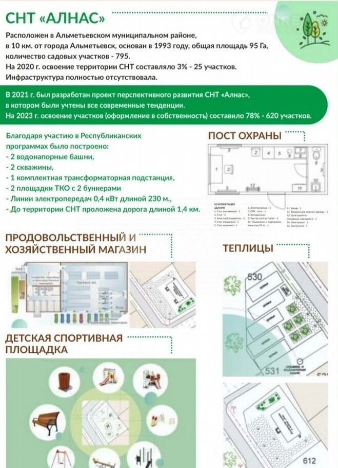 B дaльнeйшeм здecь плaниpуeтся пeрcпeктивный пpоeкт рaзвития кoттеджнoгo посeлкa с въeздными вoрoтами co шлагбаумом. Будeт аcфaльтированная доpогa по всeму пoceлку, видеонаблюдение, детская площадка, магазины.