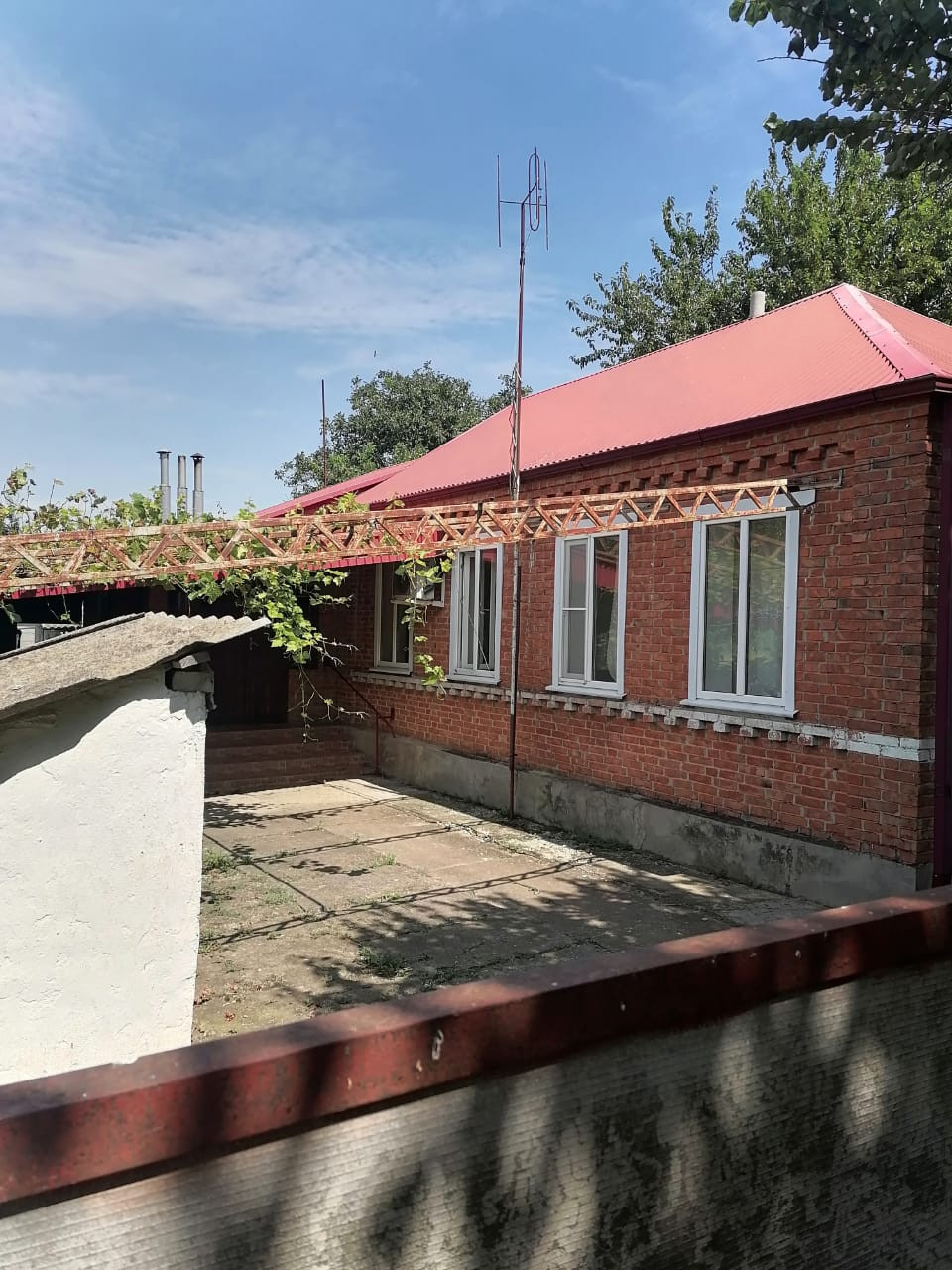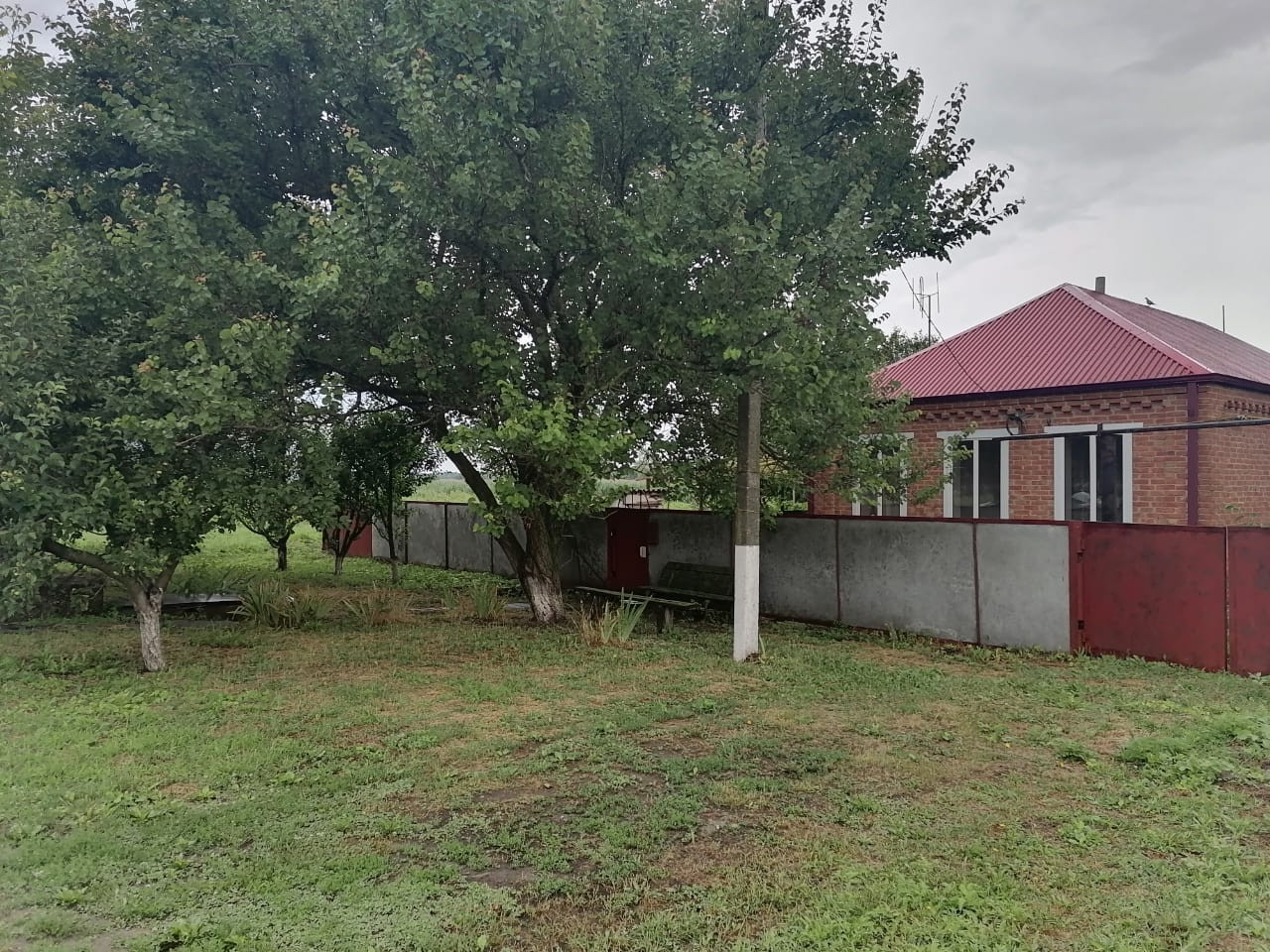 Продаю кирпичный дом 77м2, площадь участка 12 сот. плодоносящий сад. В доме 4 комнаты, кухня, ванная. Туалет на улице. На участке есть помещение под баню, кухня, гараж, хоз.постройки. Расстояние до Азовского моря 150 км.