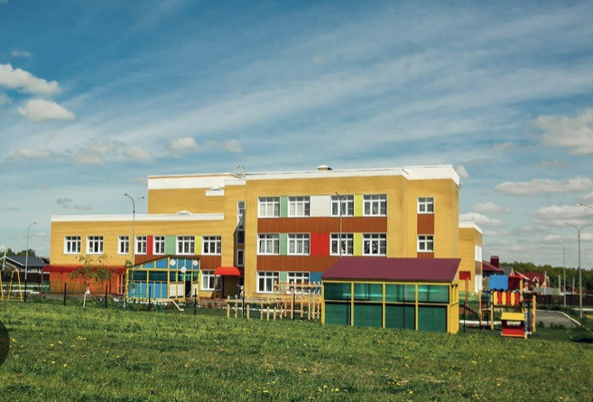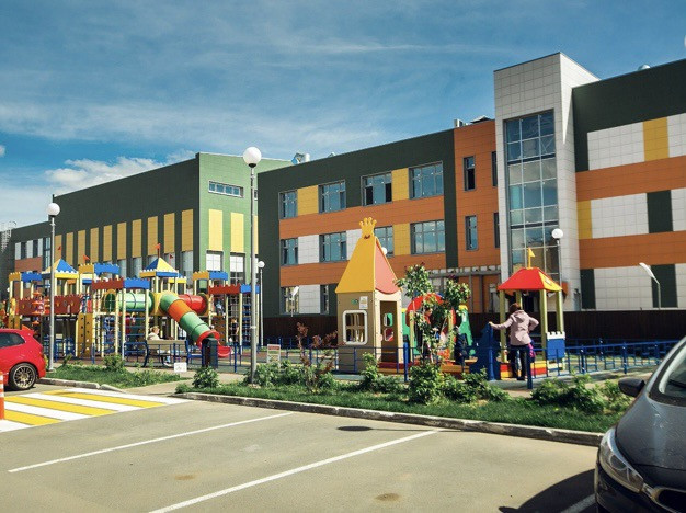 Школа, 4 детских сада, торговый комплекс, медпункт.