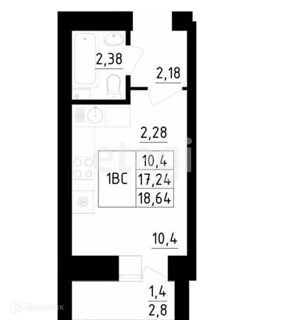 Общая площадь 19.5 м2