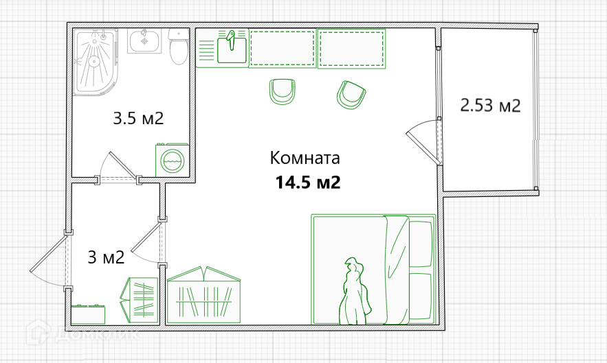 Жилая площадь 14.5 м2