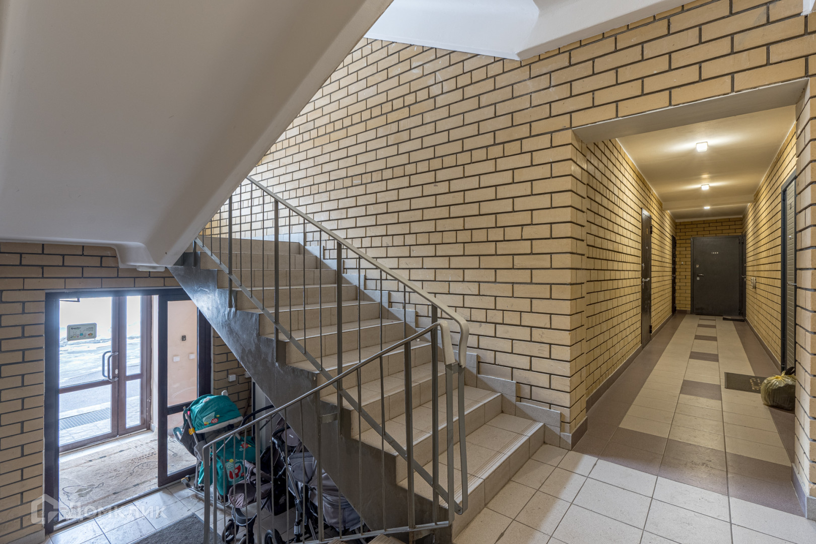 Квартира находится на втором этаже,всего в доме их три.В подъезде чисто и просторно,можно оставить коляску или велосипед.