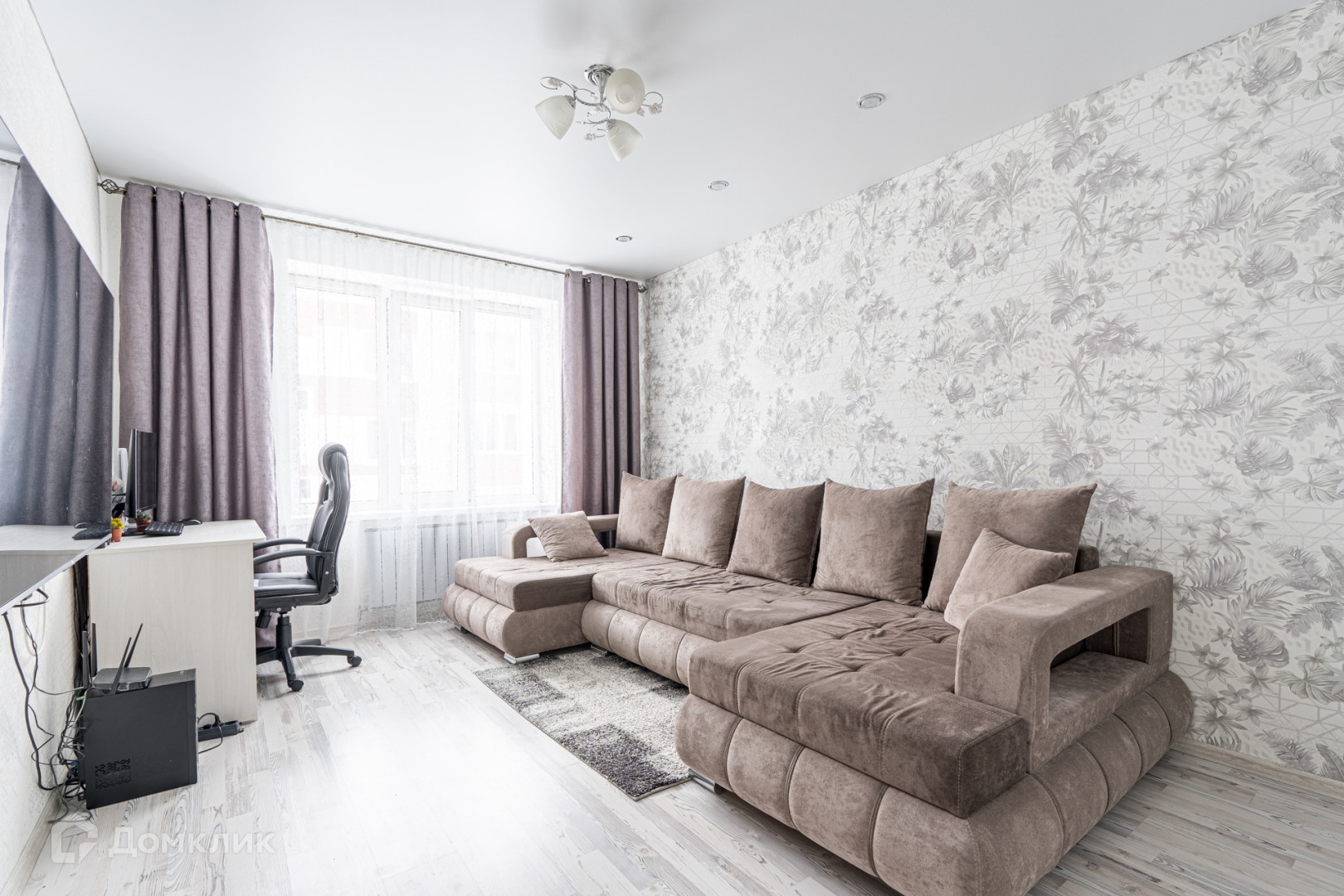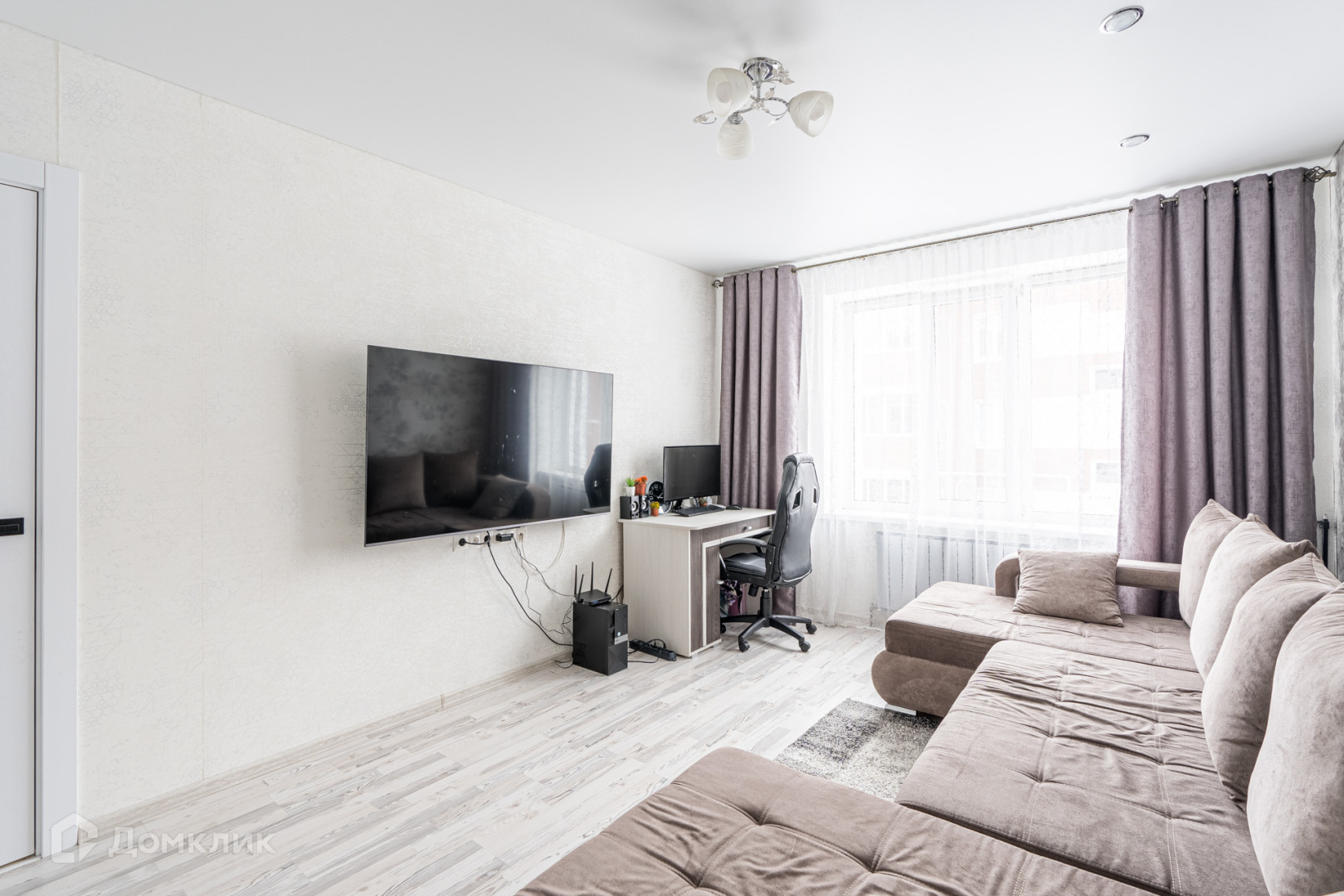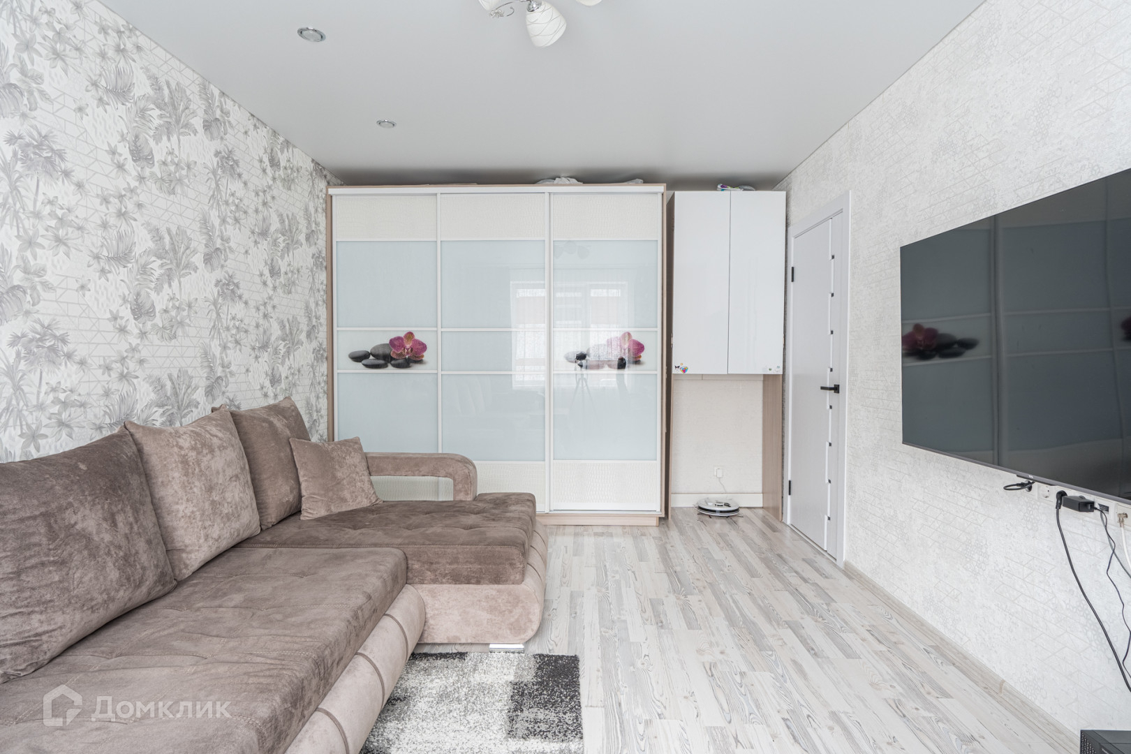 В квартире сделан современный,качественный ремонт в светлых тонах.На полу широкоформатный керамогранит.В спальне и зале качественный ламинат.В санузле и ванной установлена система теплые полы. Потолки натяжные  с точечными светильниками. Стильные межкомнатные двери.