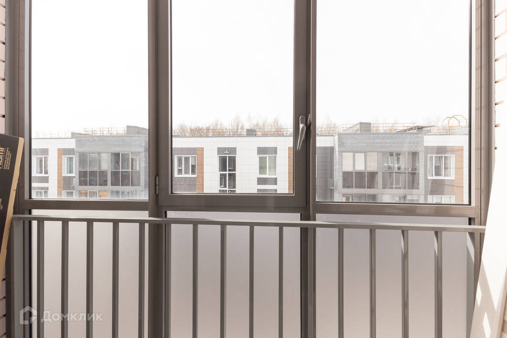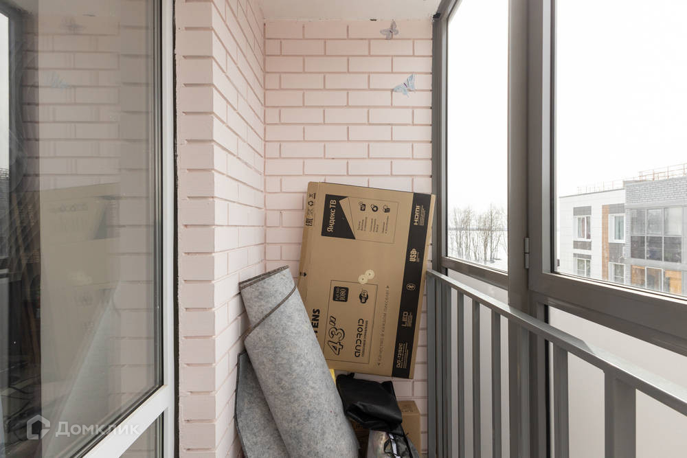 балкон обшит , установлен кондиционер, окна из балкона смотрят на школу и площадку