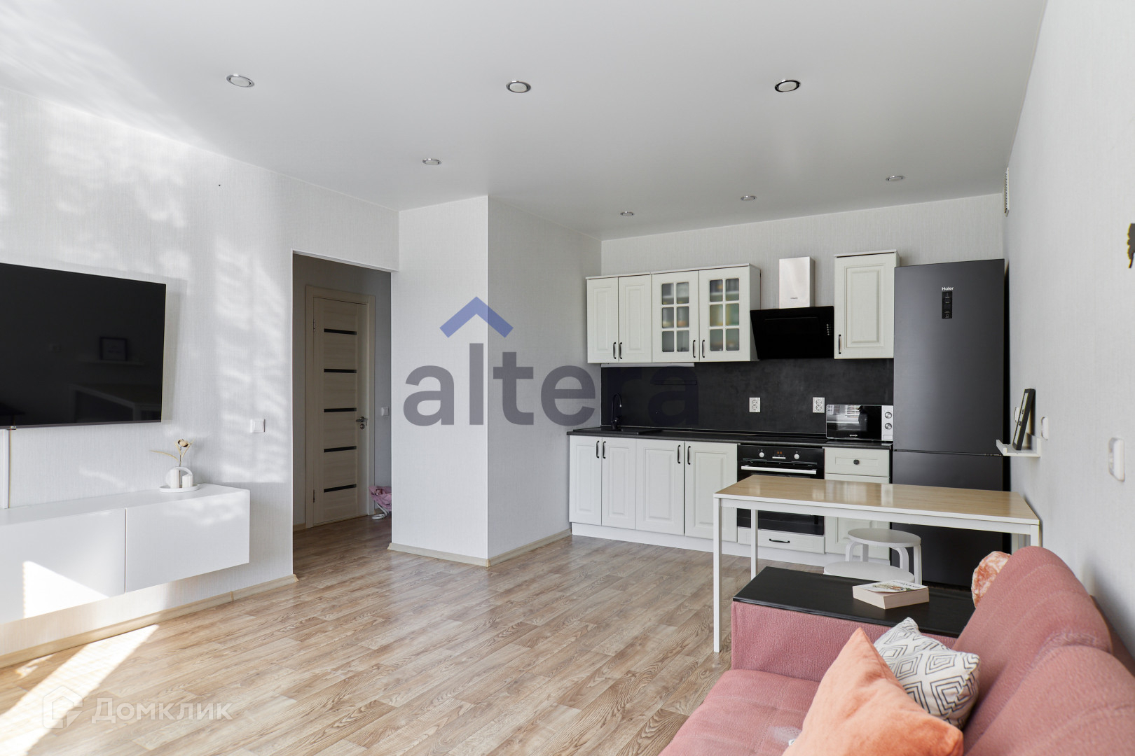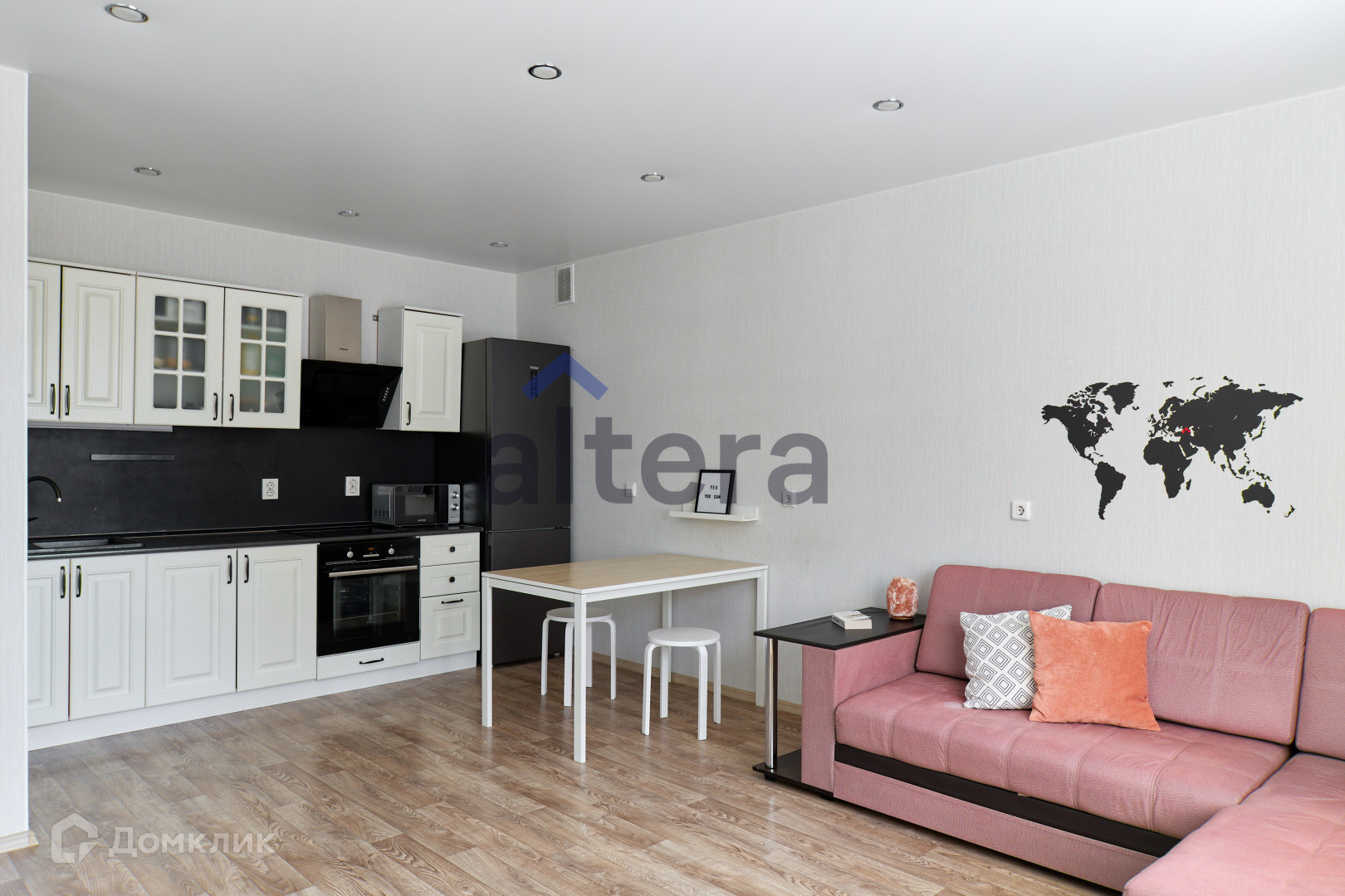 — Удачная планировка просторная кухня-гостиная и отдельная спальная комната с нишей для шкафа-купе или рабочей зоны и балконом.