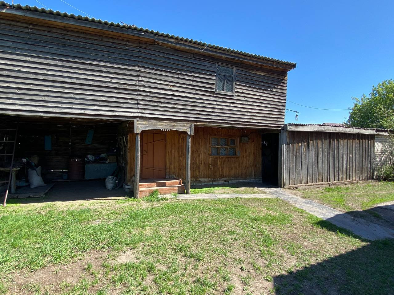 Хоз. постройки: углярка, баня, летняя кухня, 2 гаража, большой брусковый сарай, хороший, большой, ухоженный сад, огород(большой).Скважина в доме.