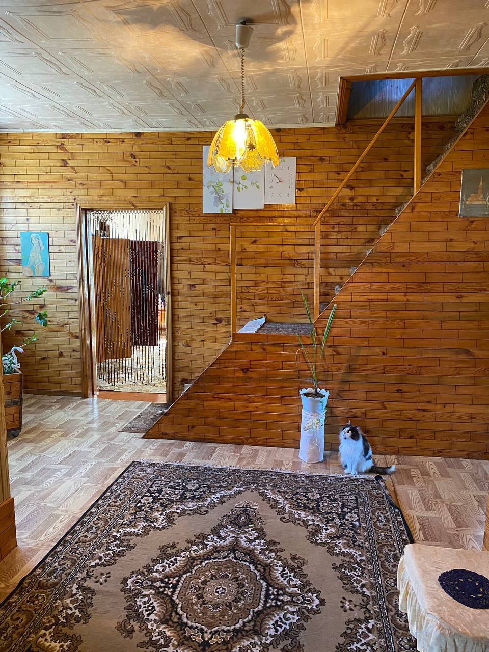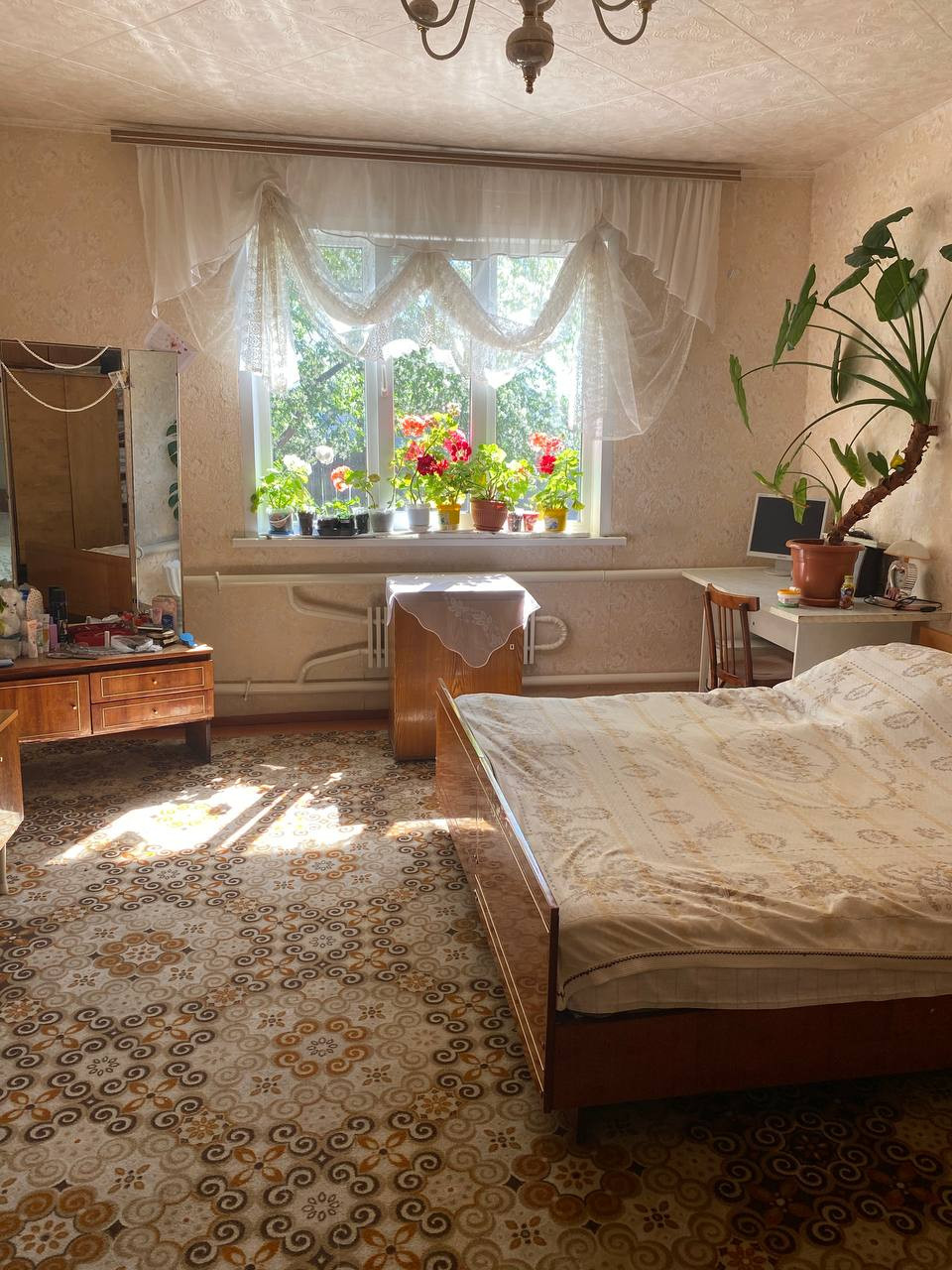Дом: зал,3 спальни, ванная и туалет отдельно, коридор, кочегарка, кухня, веранда, вход парадный и черный, лоджия.