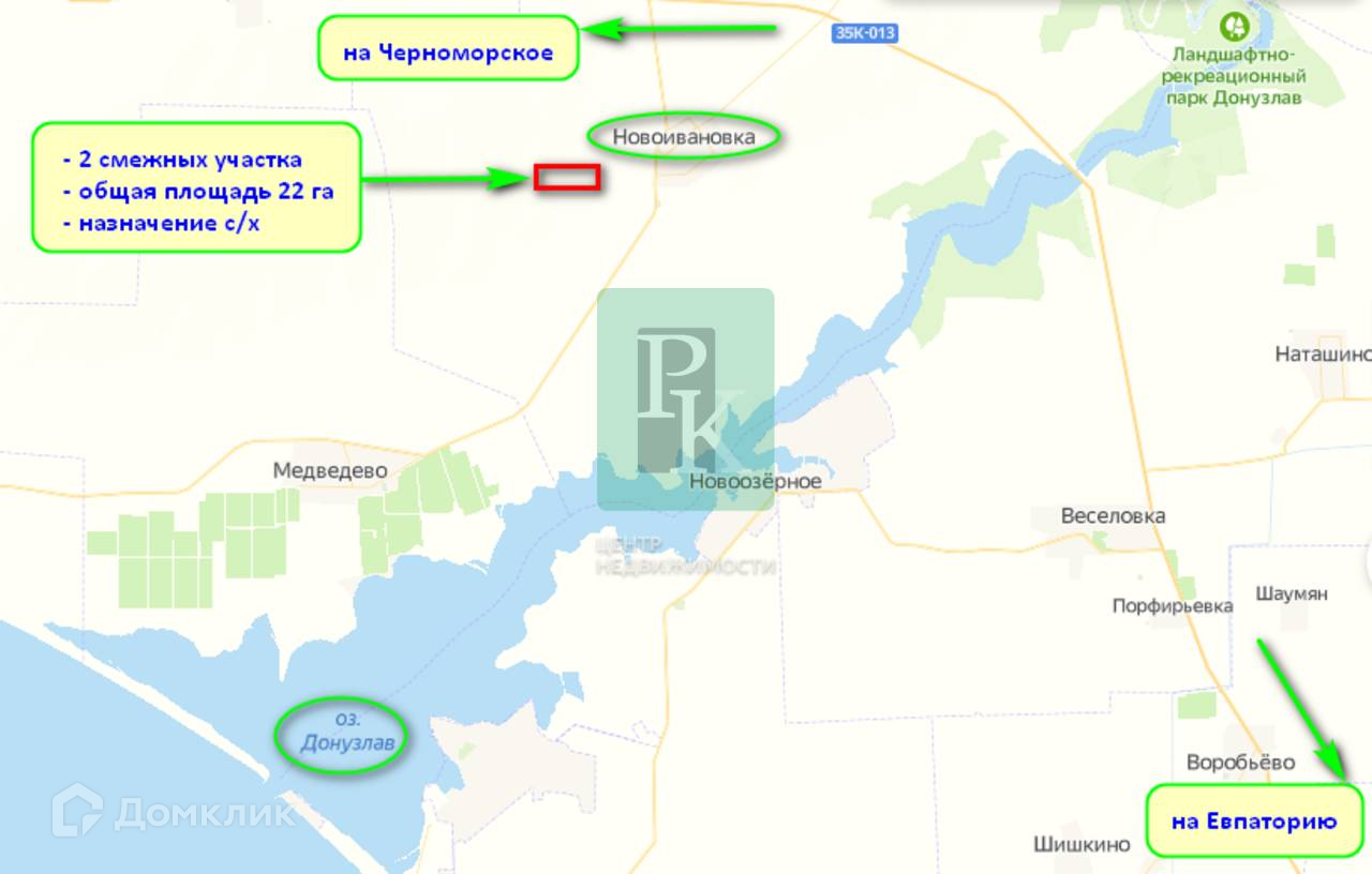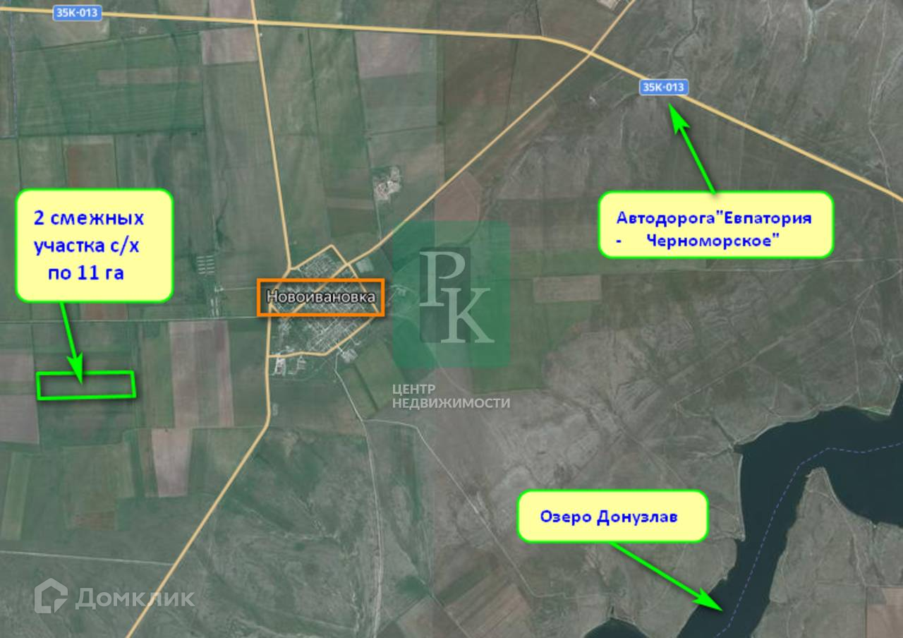 Участок находится в 2 км от с. Новоивановка, где есть необходимая для жизни инфраструктура. Рядом проходит автодорога «Евпатория-Черноморское».