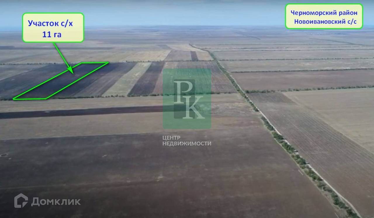 Участок 11 Га (СТ) расположен в республике Крым, Черноморский район, село Новоивановка. Участок ровный, правильной прямоугольной формы, с соотношением сторон 100 м*1100м, без уклона. Подъезд грунтовка.