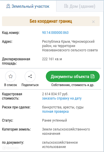 Стоимость недвижимости: