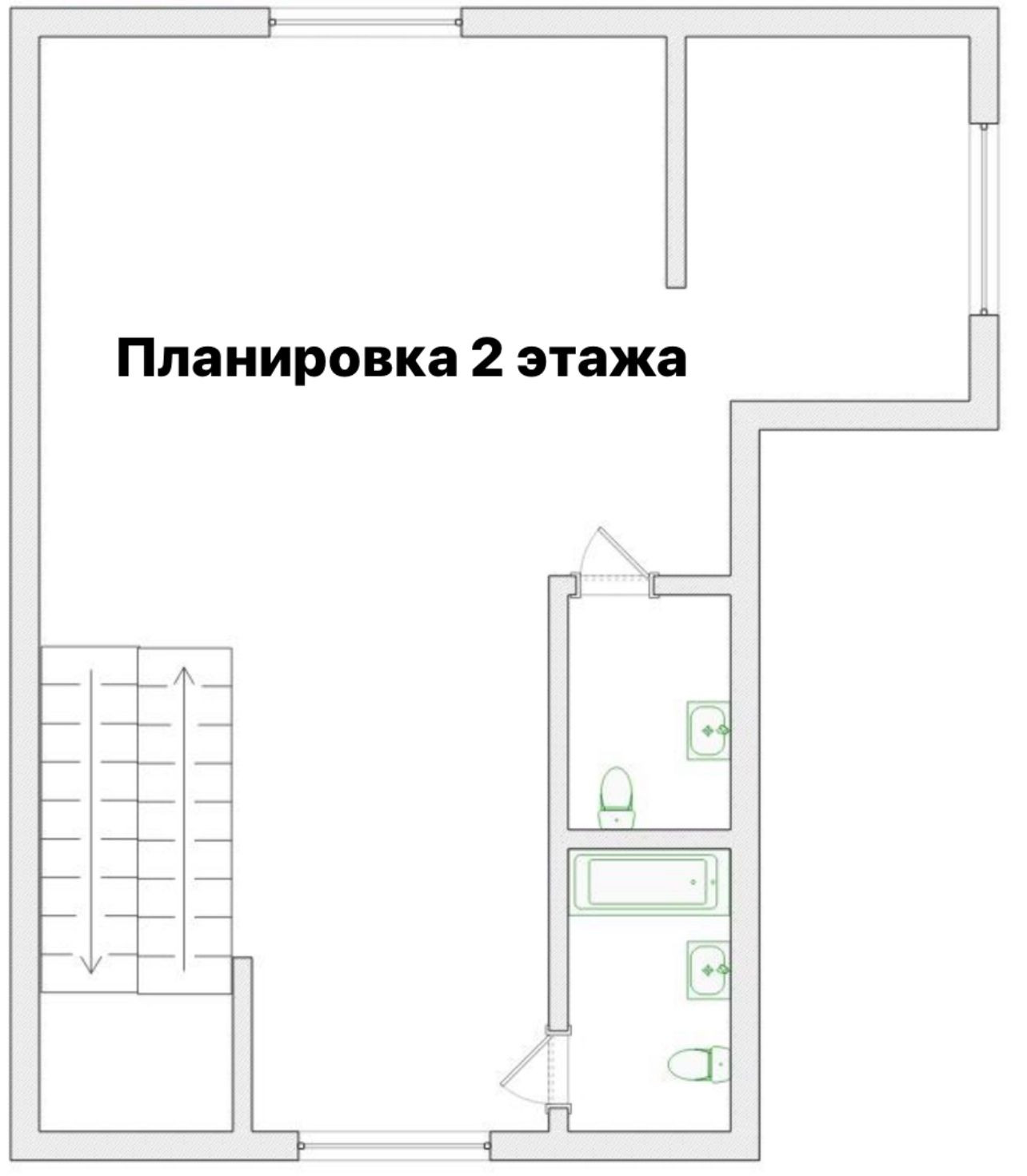 Второй этаж: свободное пространство, можно распланировать как захотите и 2 санузла (изначально было задумано 3 комнаты с санузлами и гардеробная).
