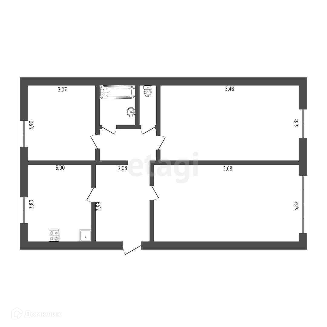 3-комнатная квартира, 66.6 м2, этаж 1 / 1, на продажу в селе Новокаменском, Молодёжная улица, 2