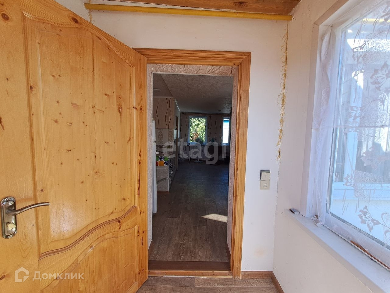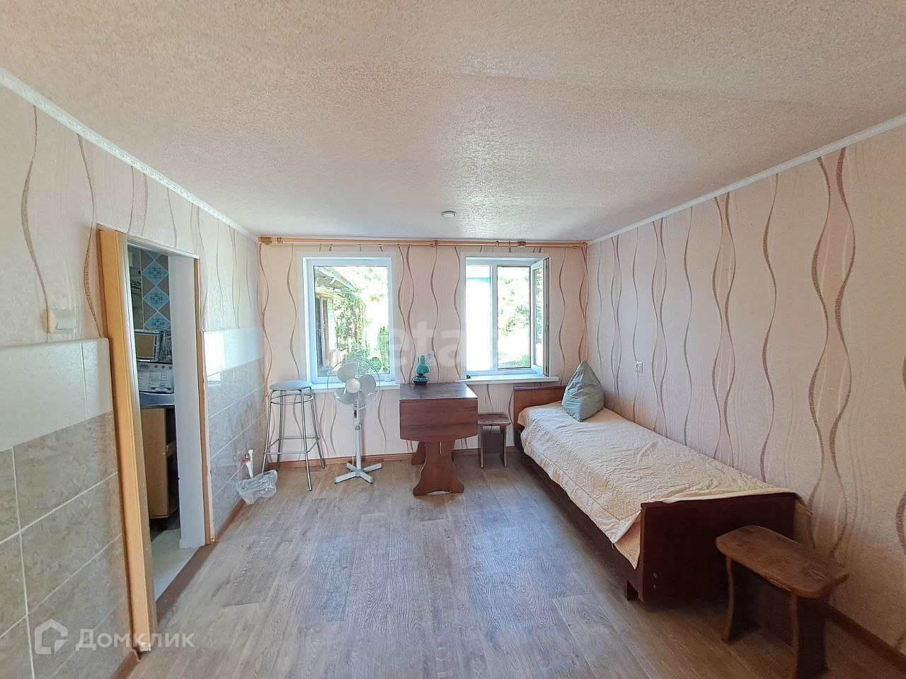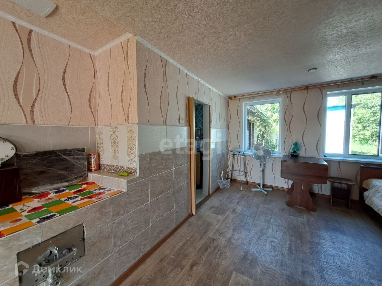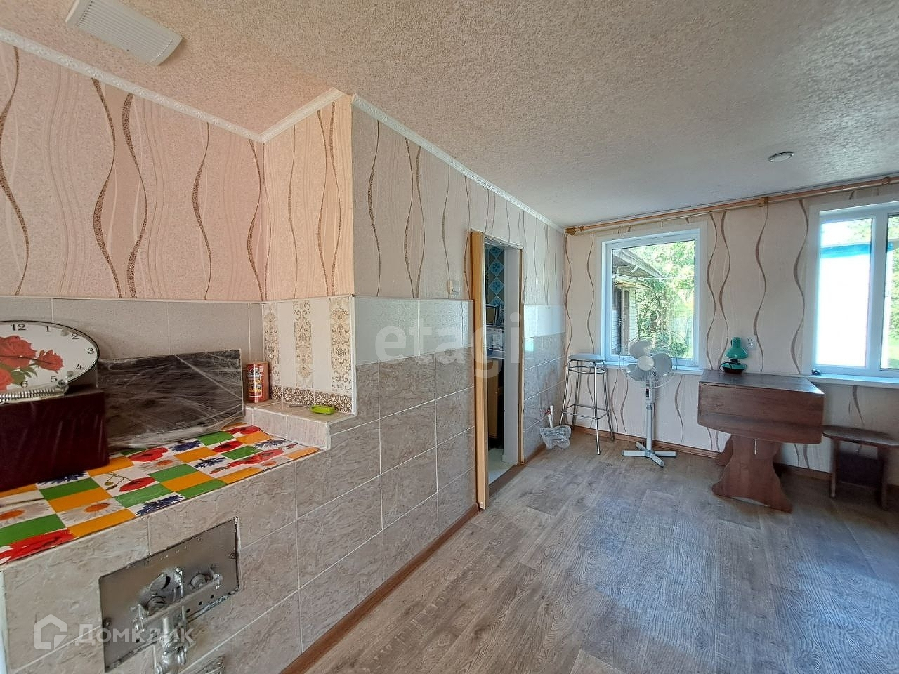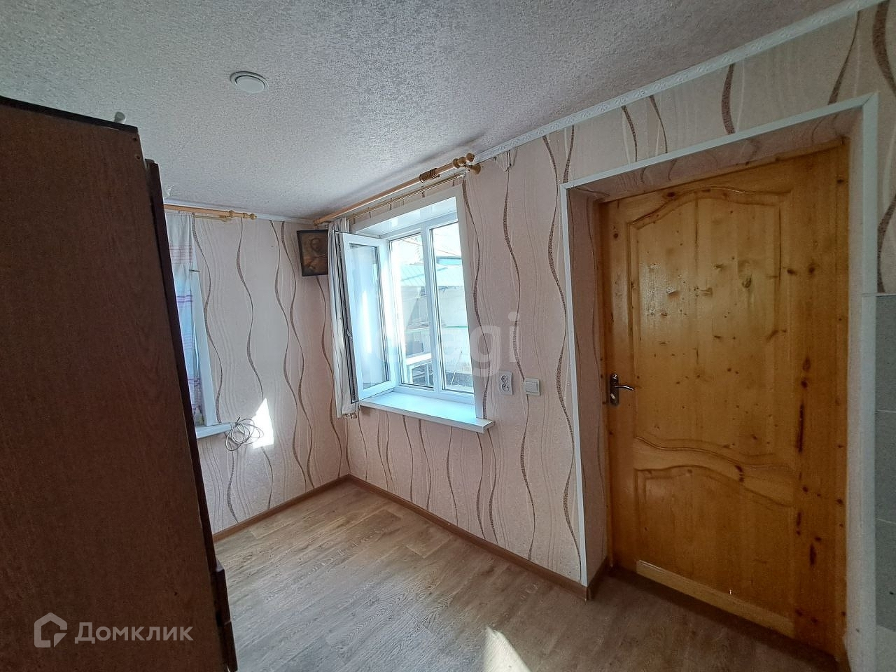 Дом общей площадью 60 кв.м. В доме 4 комнаты. Материал стен — бревно.