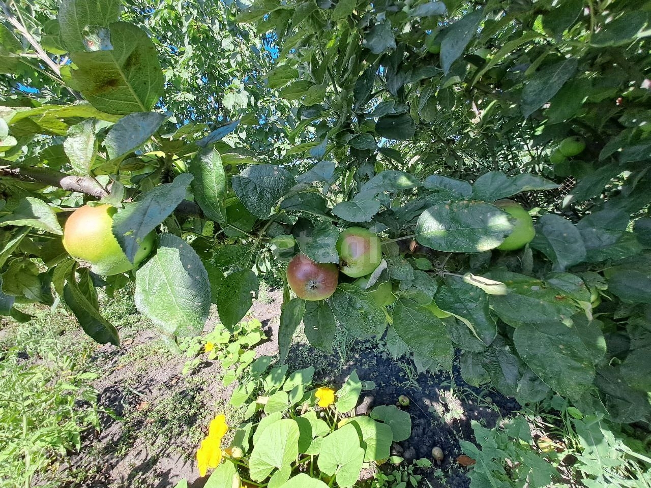 На участке растет молодой плодоносящий сад: сортовые Груши, Черешня ,Яблони, Сливы, Калина и не по одному экземпляру.