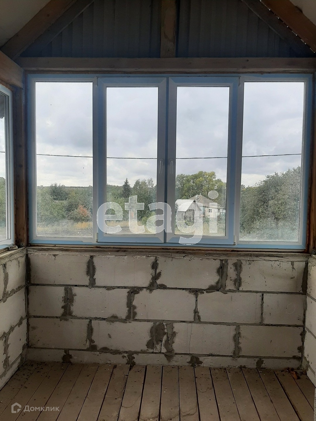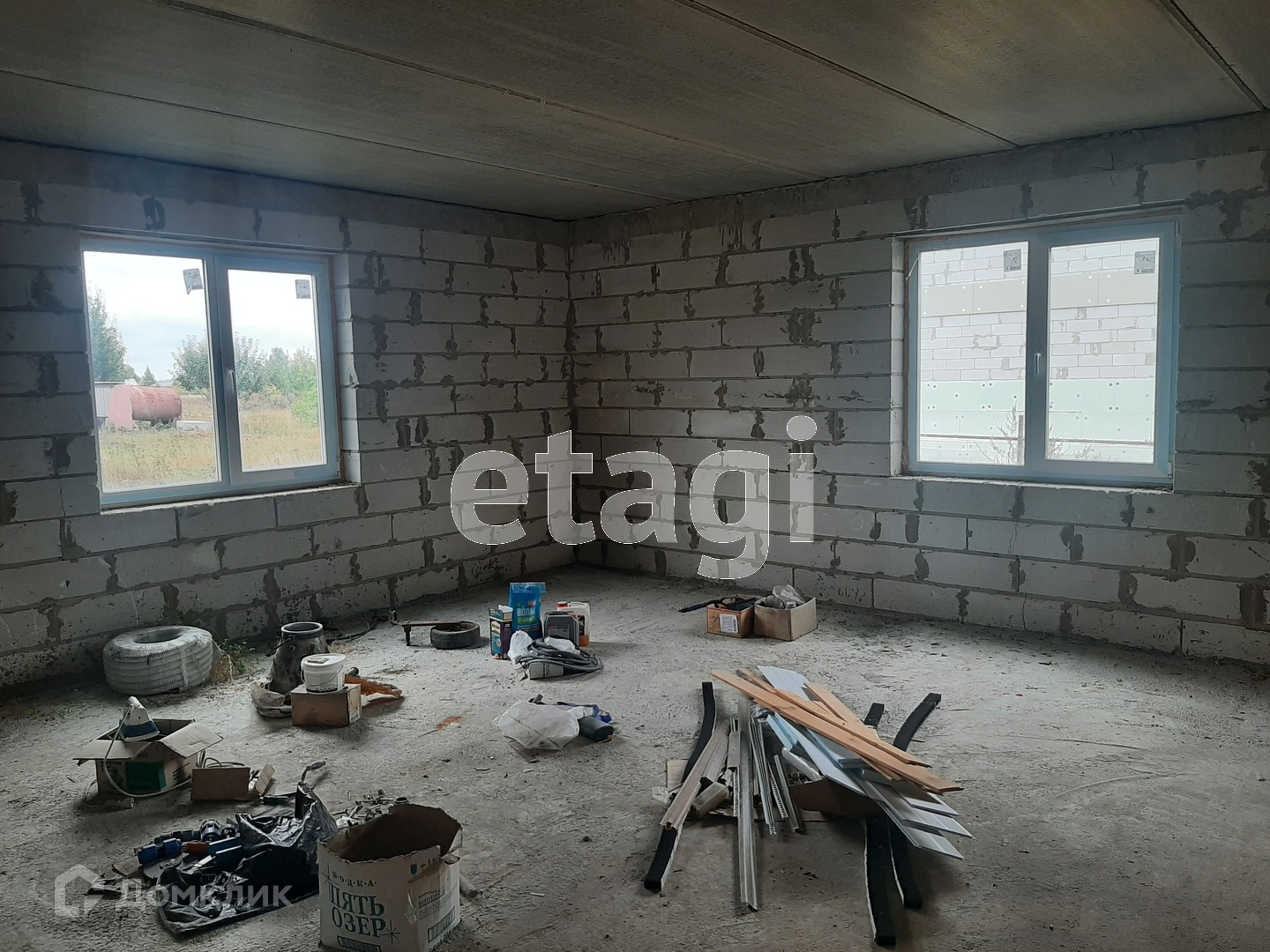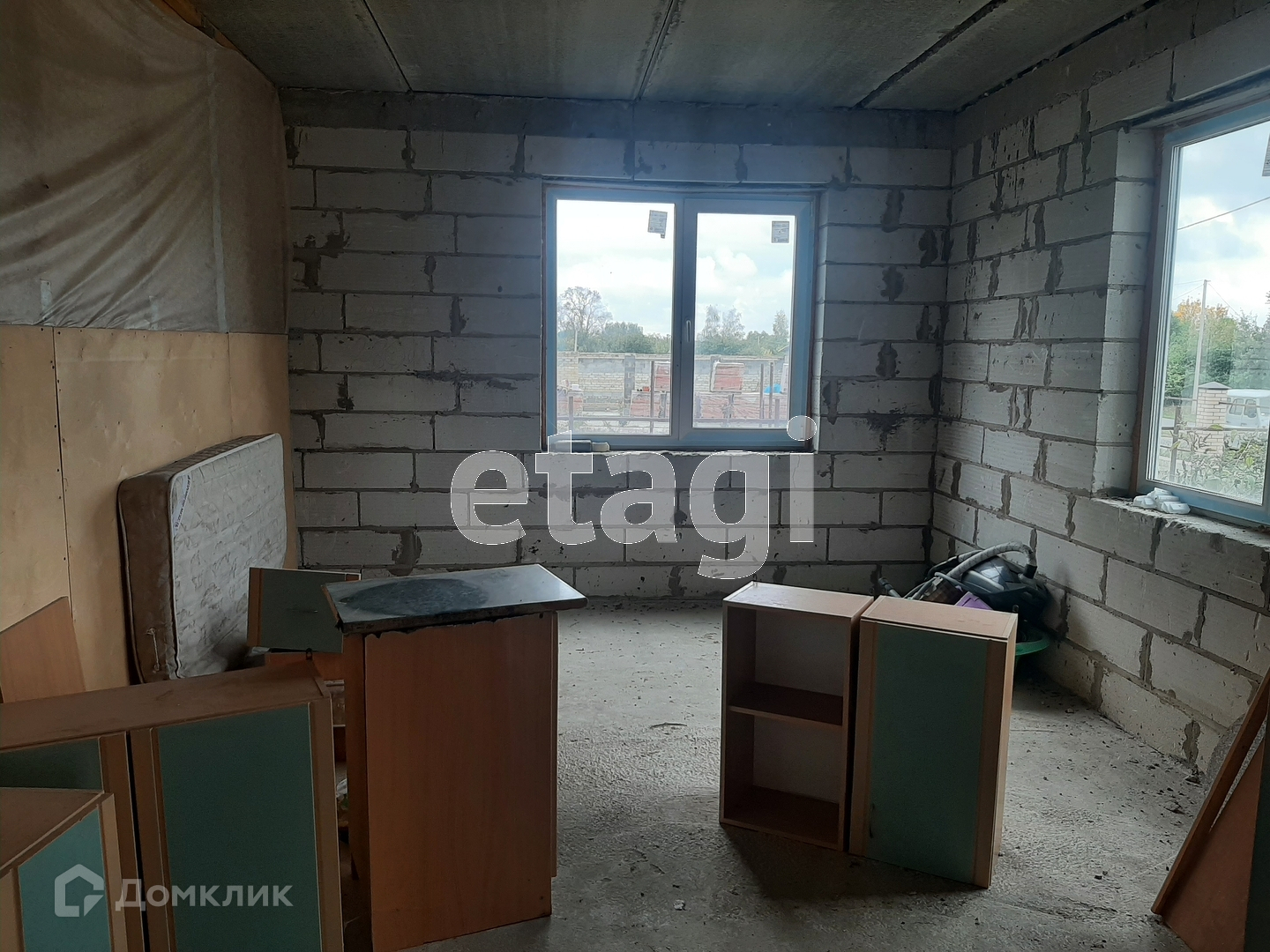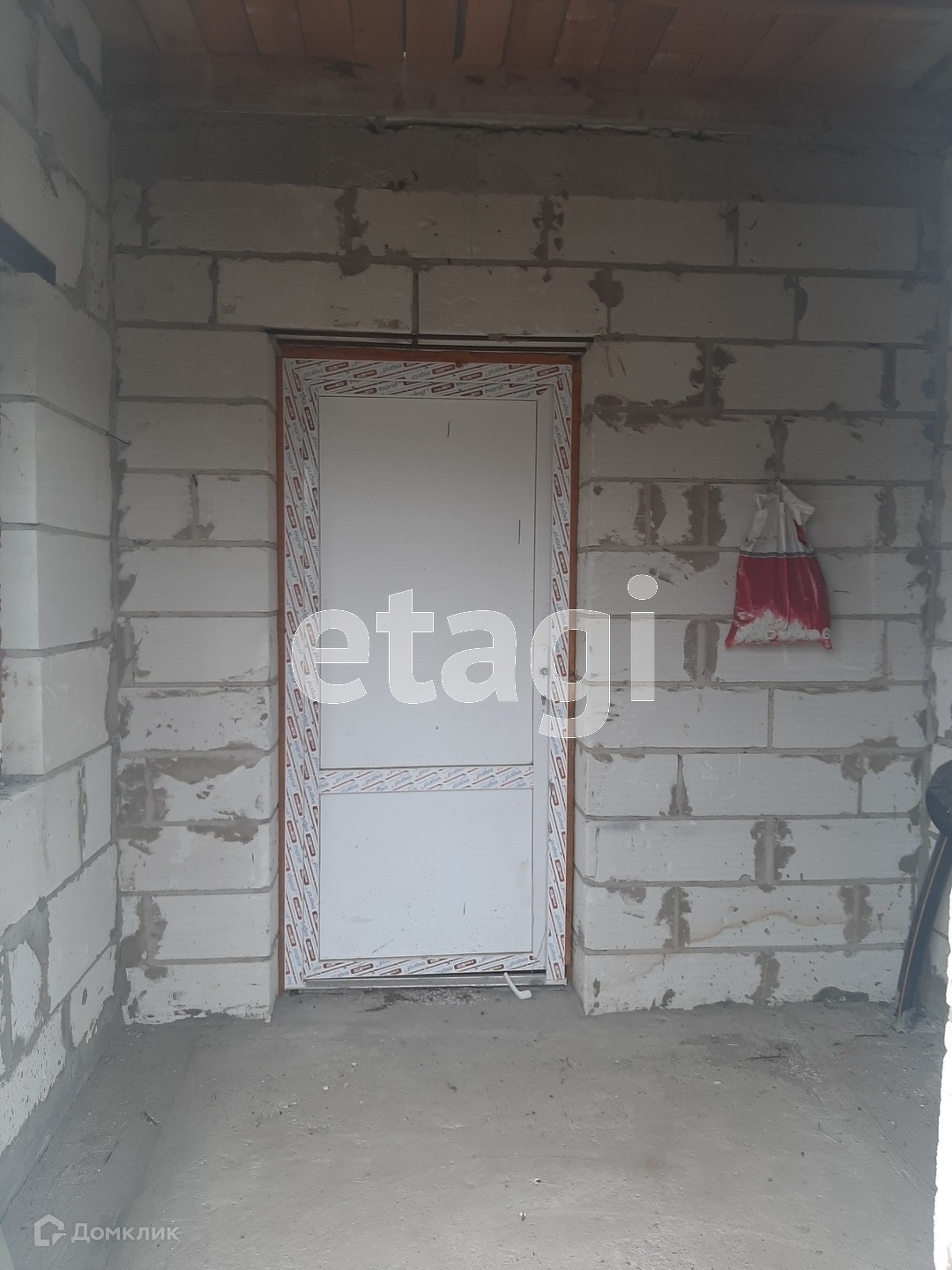 Установлены окна и входная дверь, отделки нет .