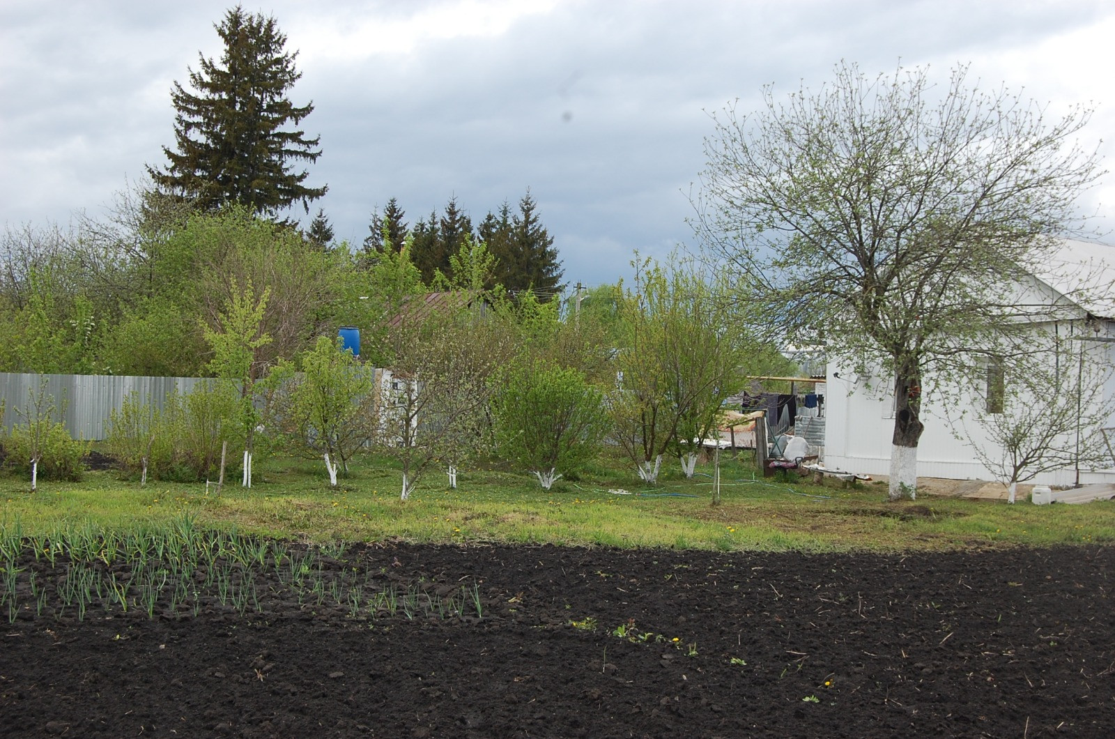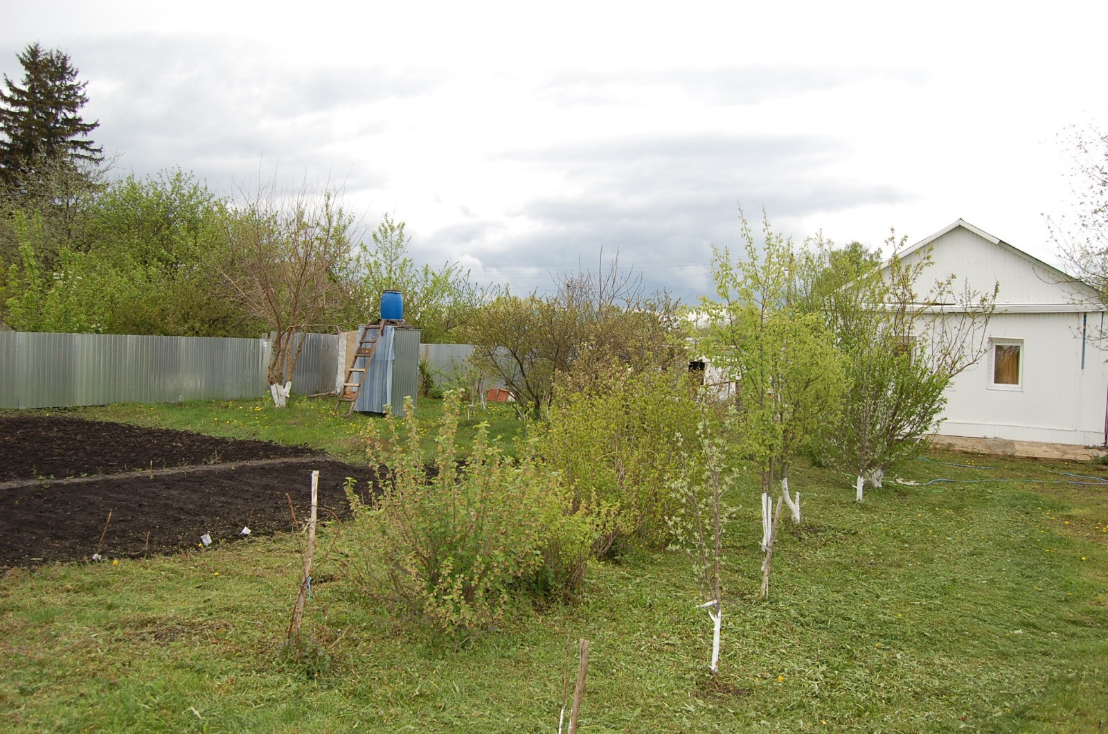 Высажены малина, клубника, молодые яблони,