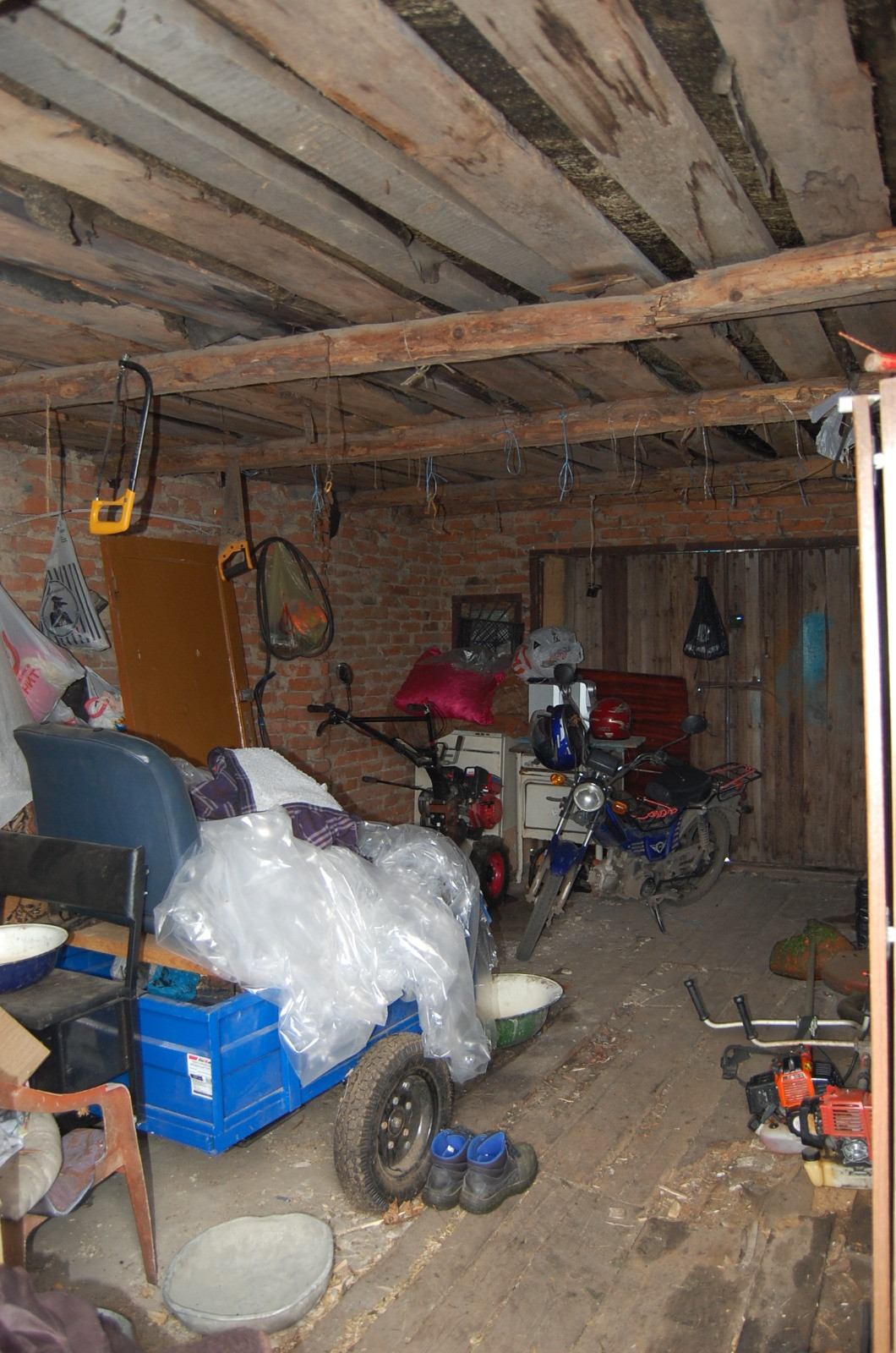 с мотоблоком с прицепом, бензокосами и бензопилой.