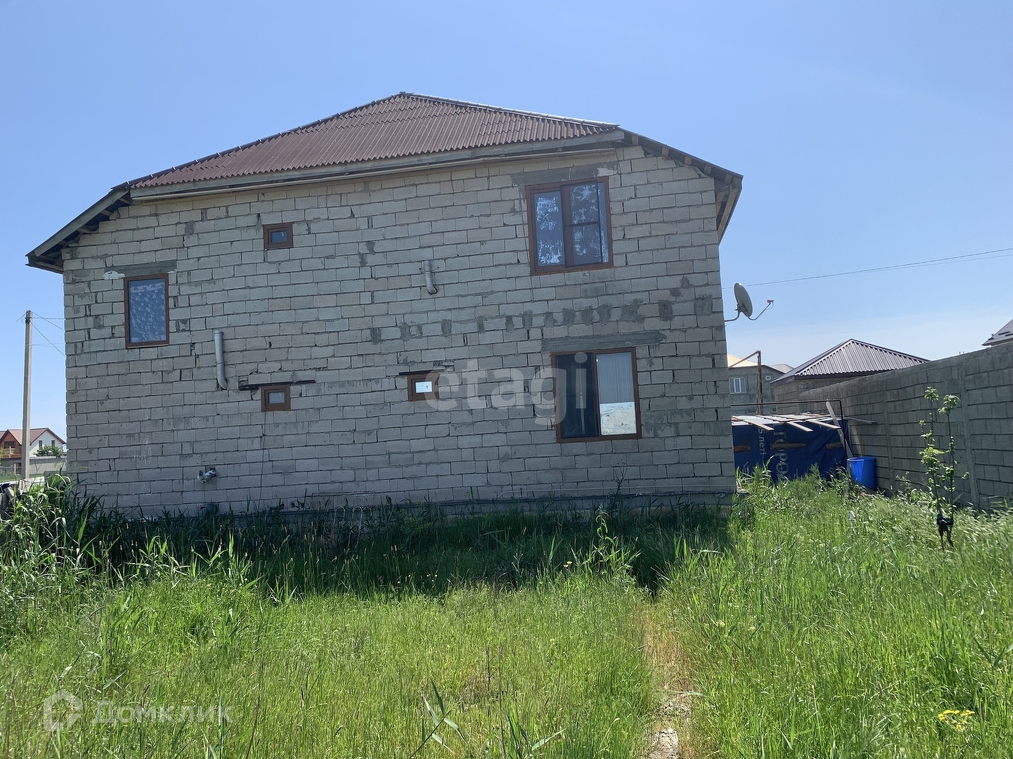 Дом достроен, проведены ремонтные работы, чистовая отделка, под обои подготовлены, все коммуникации проведены.