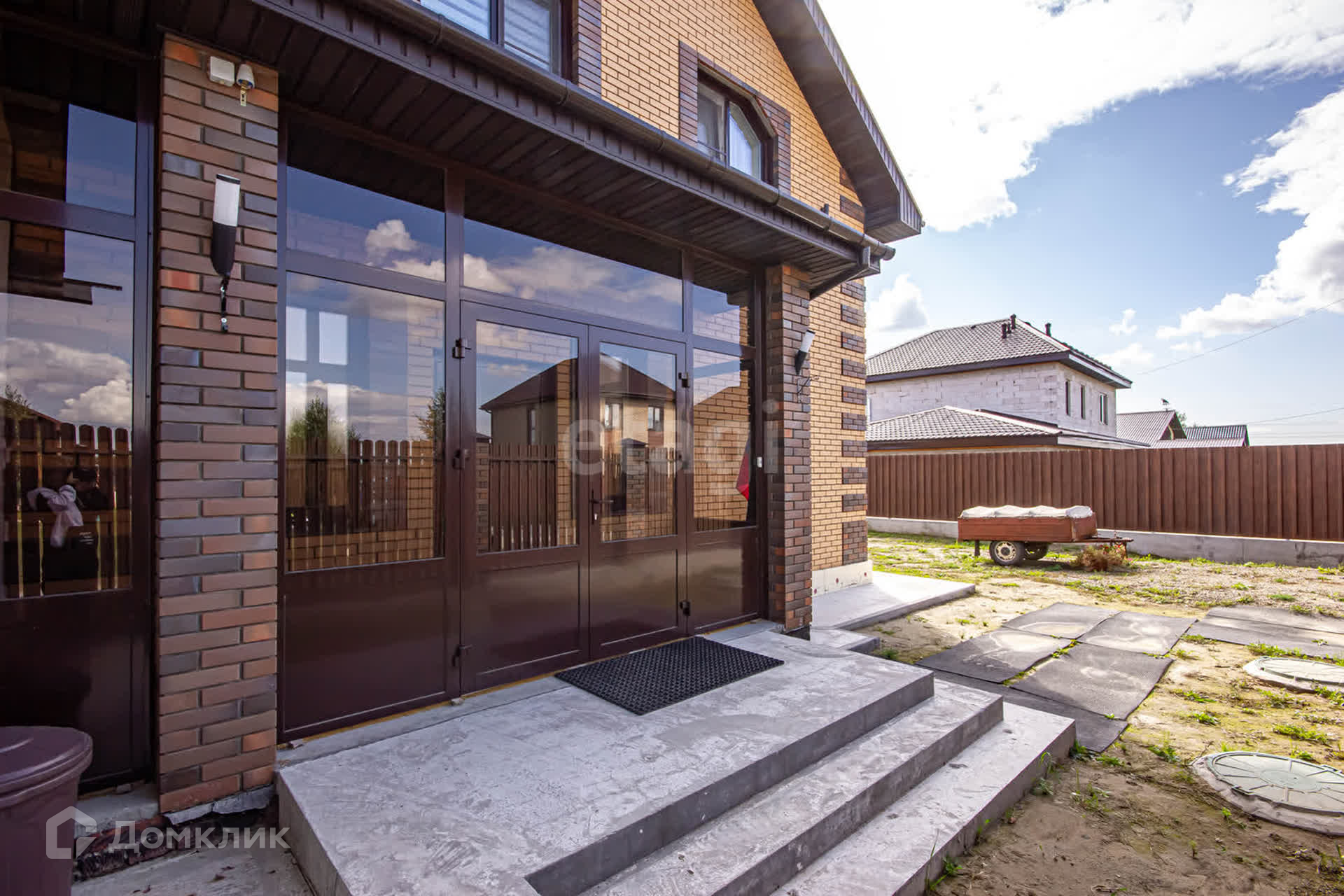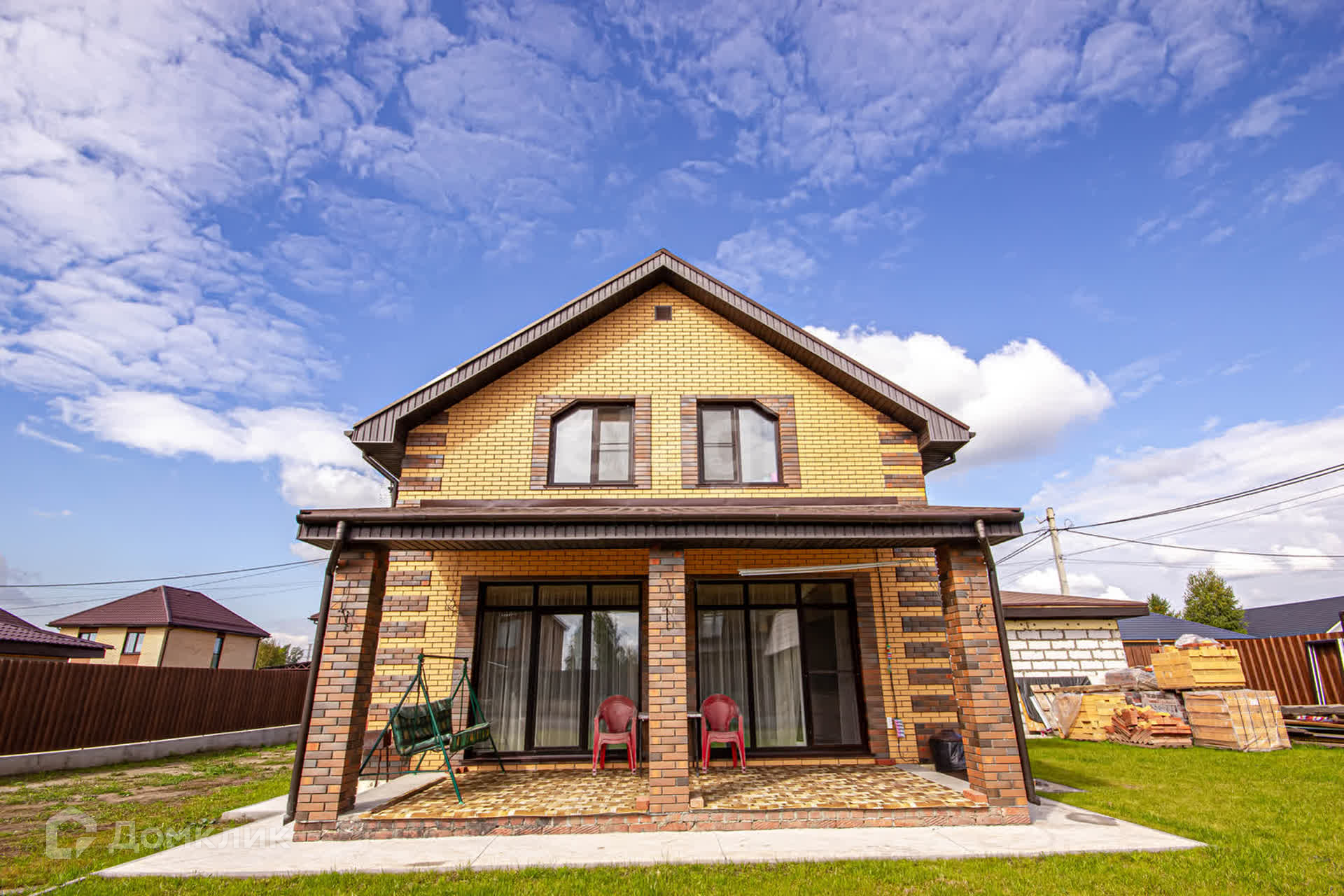 Оцените прагматичность в строительстве каркасного домостроения. Материал стен всего дома плиты каркасные, толщиной 200мм плюс утеплитель толщиной 100мм и отделка керамическим кирпичом. Видеонаблюдение по всему периметру земельного участка, гараж на два машино-места.