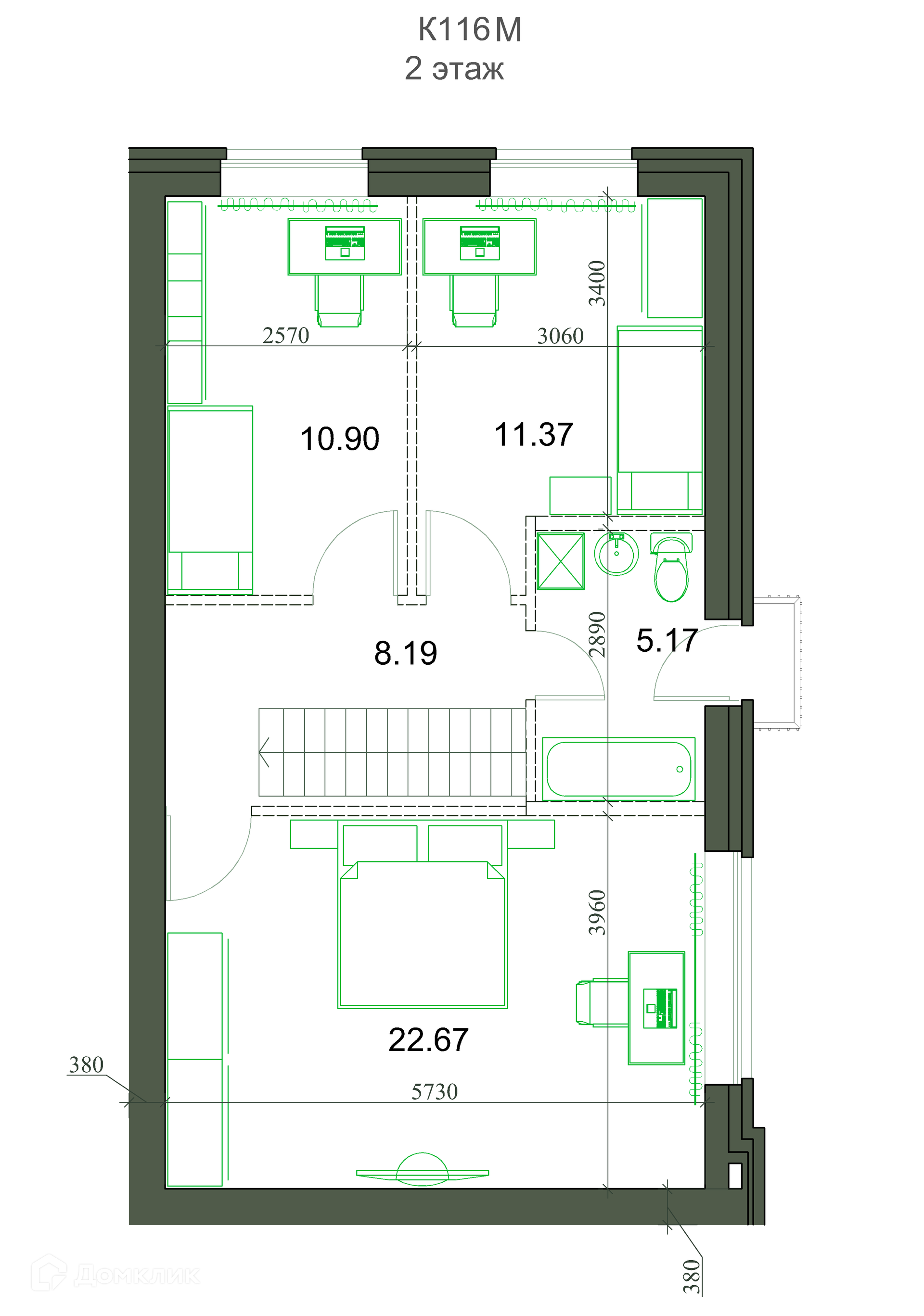 Общая площадь 116 м2