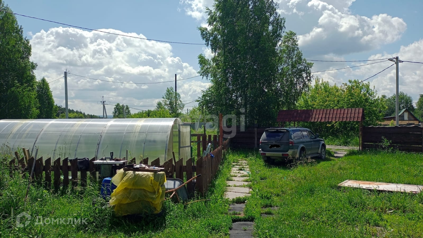 Теплица 9*3, две теплицы под огурцы 2*0,6 посадки смородина, малина, крыжовник, жимолость, вишня, яблоня, слива, черемуха.