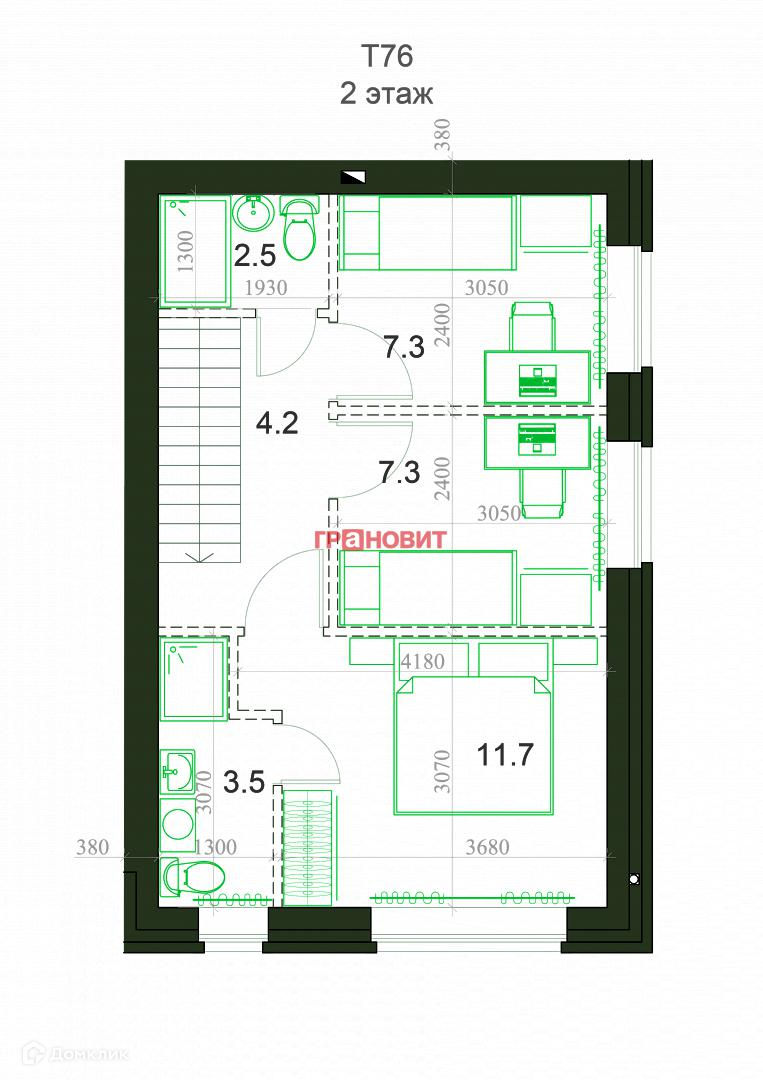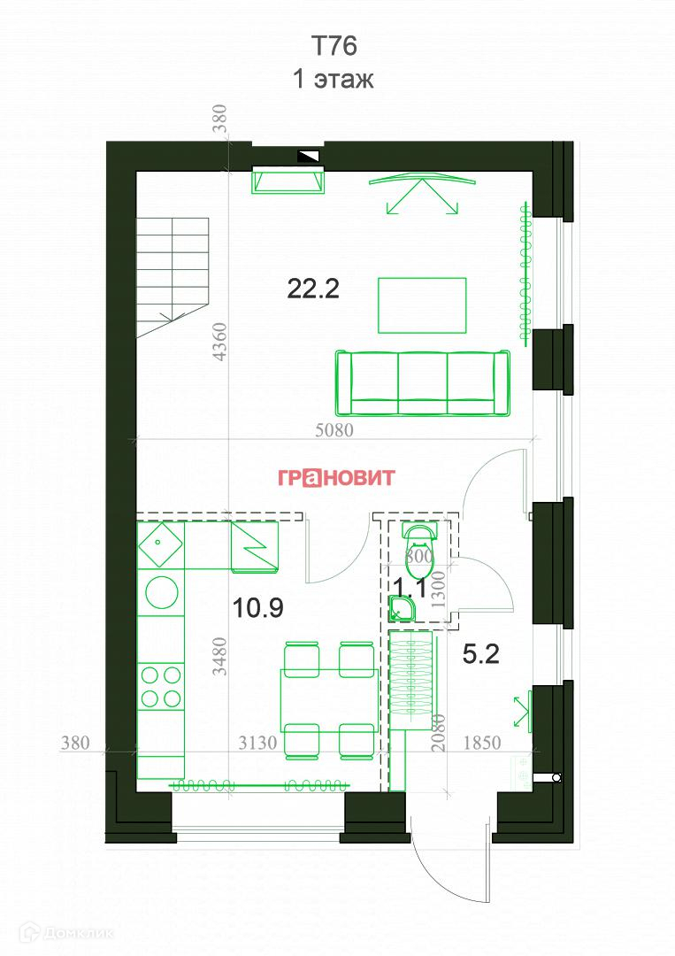 Общая площадь 77 м2