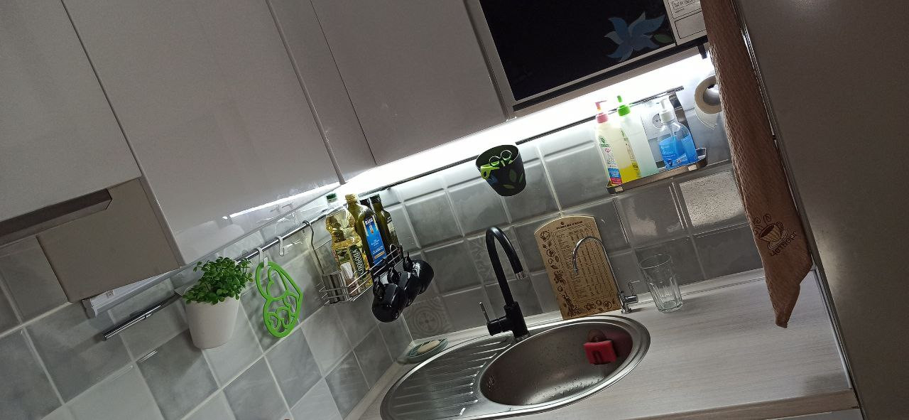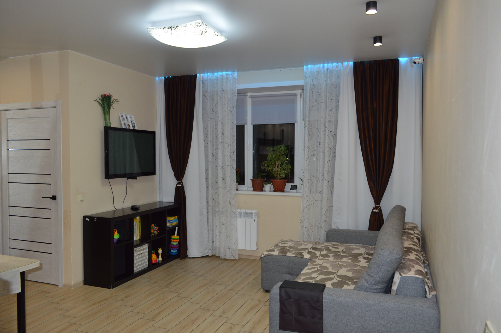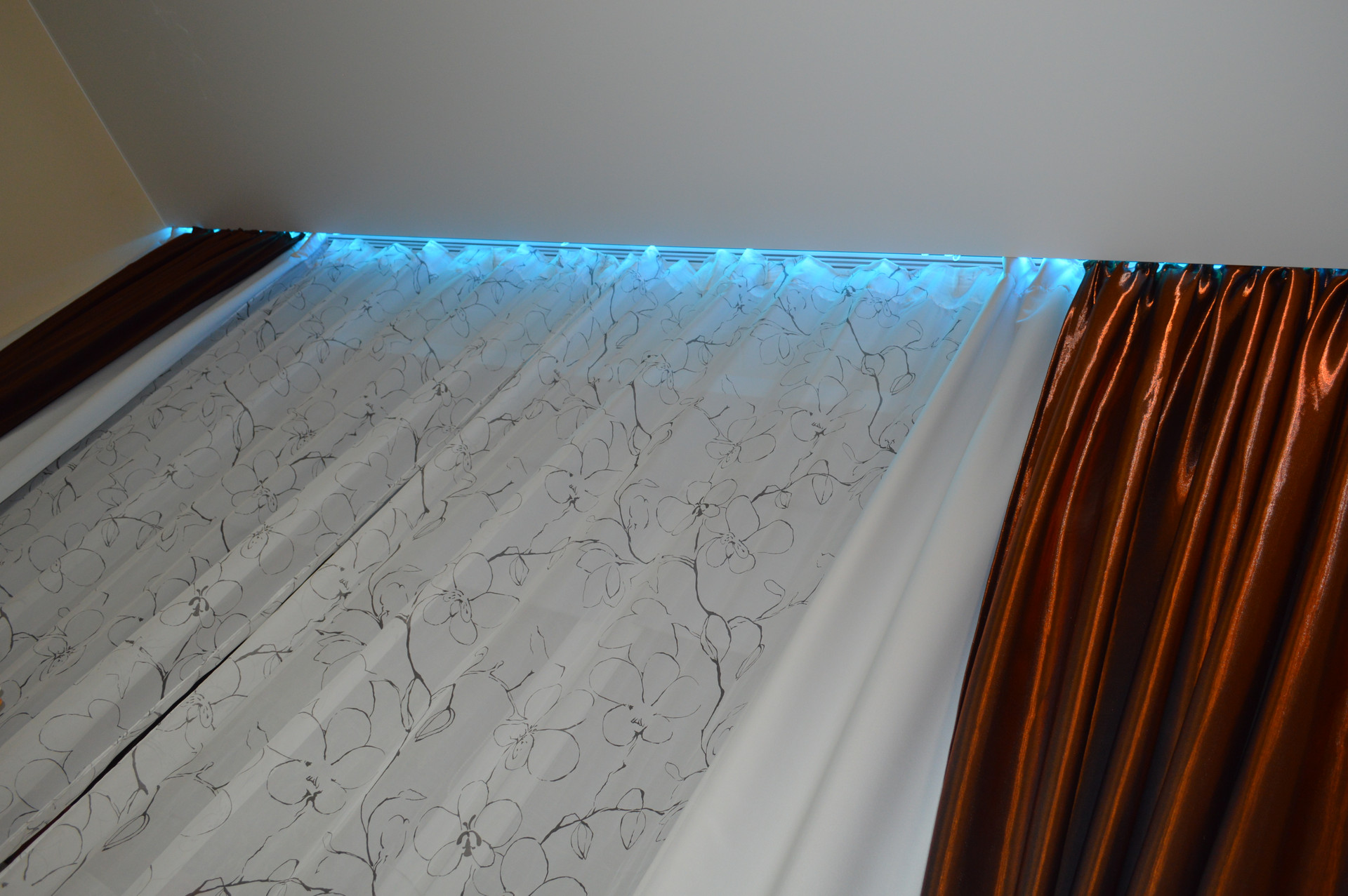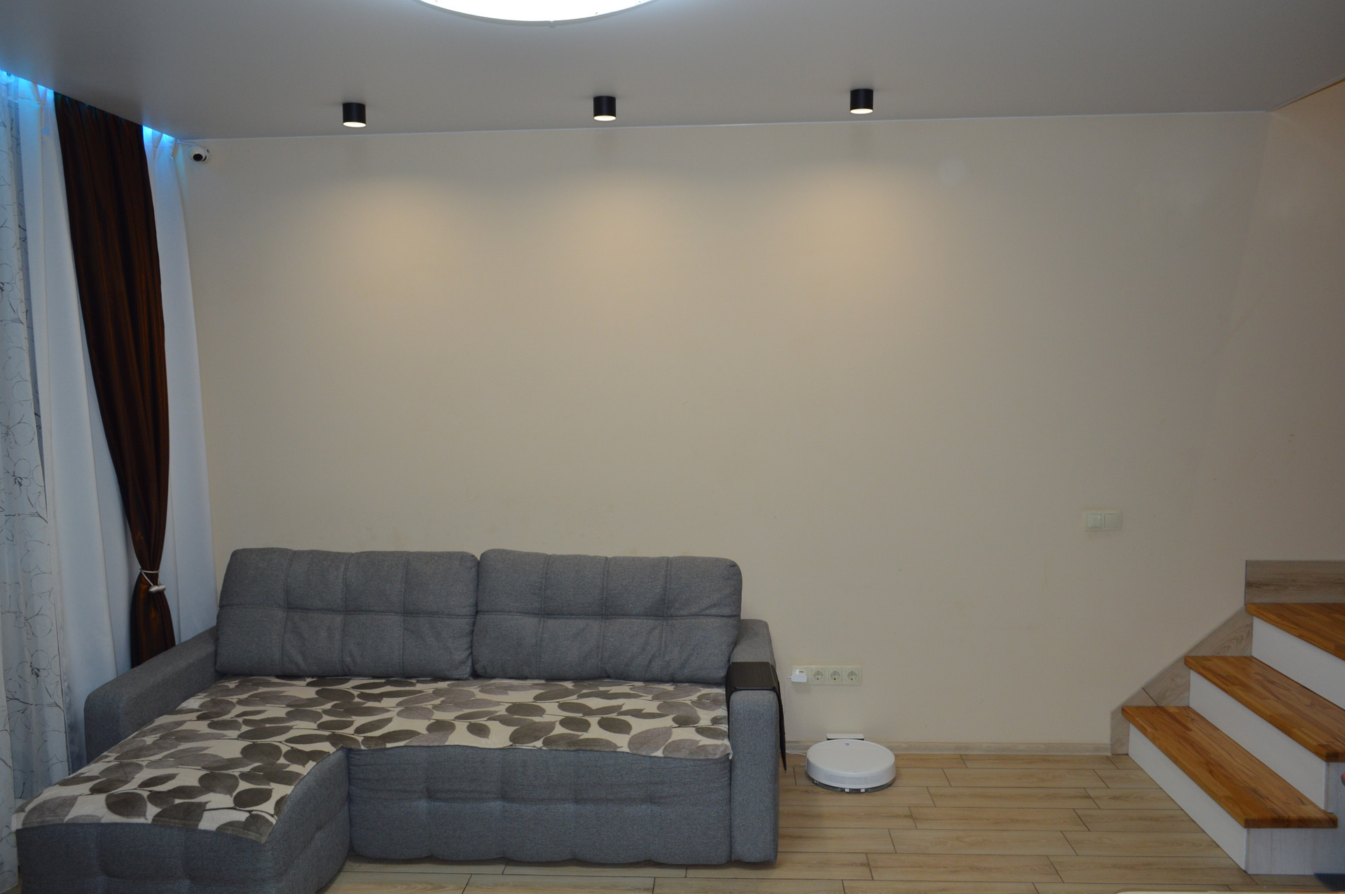 ☑️ На первом этаже в натяжном потолке установлен ПК профиль для штор с RGB подсветкой, управляемой с пульта.