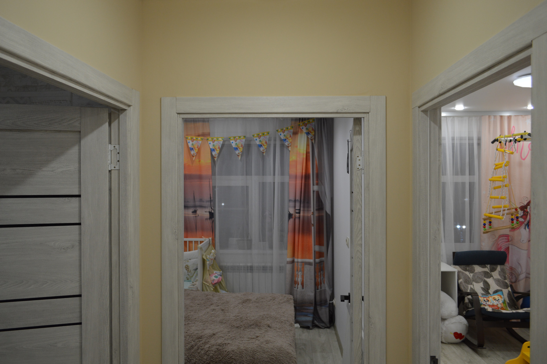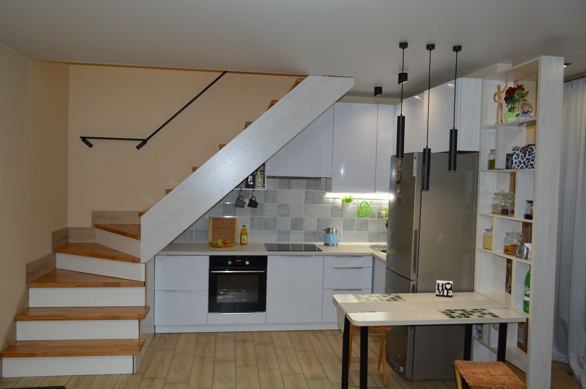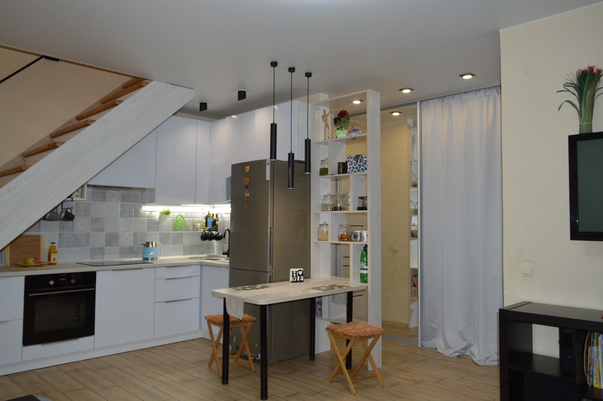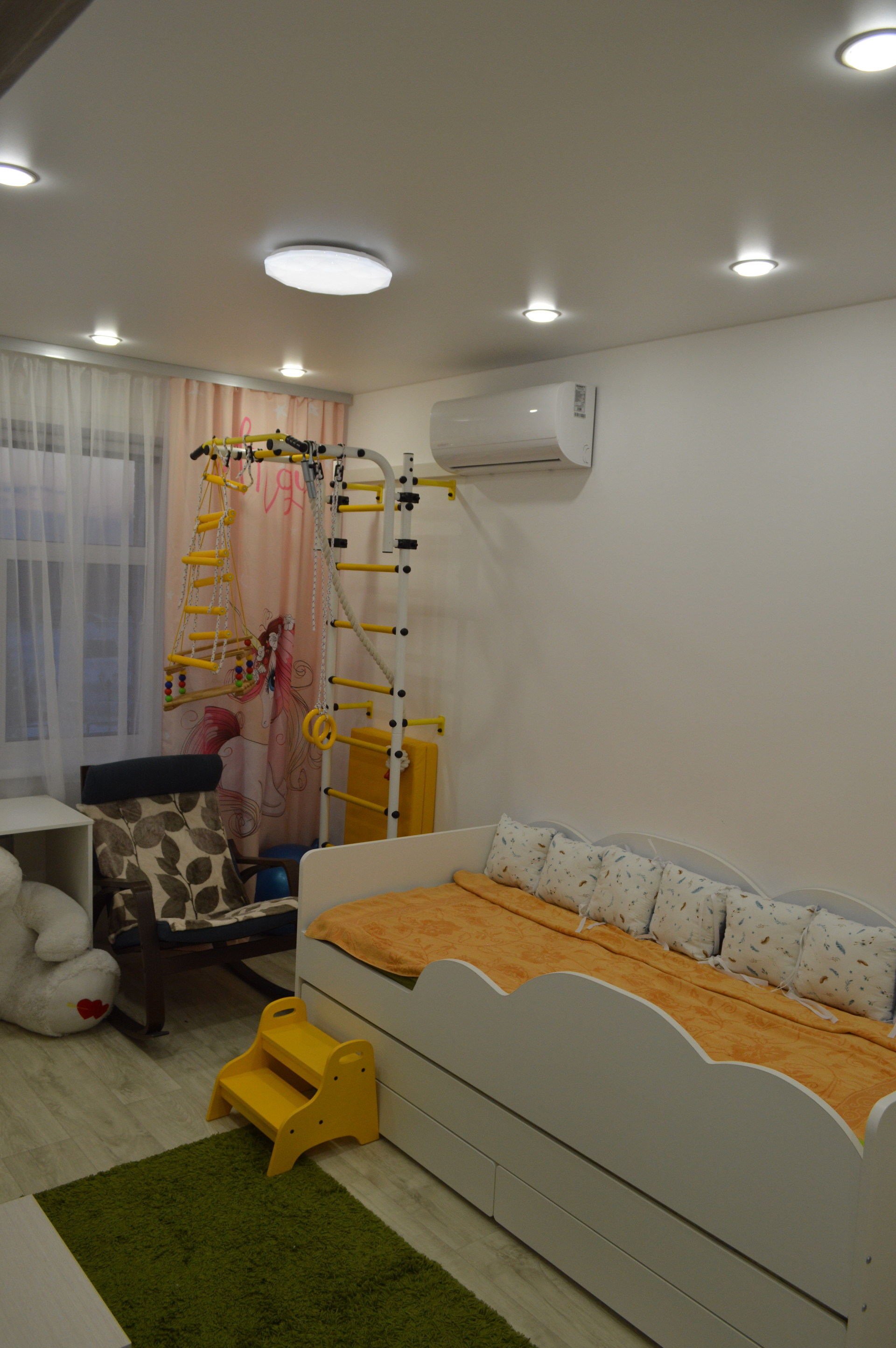 ☑️ На первом этаже в натяжном потолке установлен ПК профиль для штор с RGB подсветкой, управляемой с пульта.
