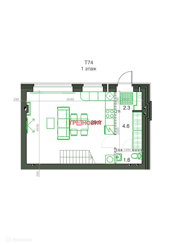 Общая площадь 75 м2