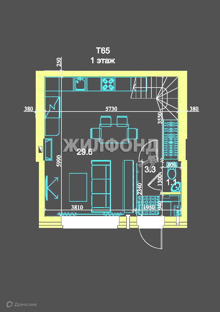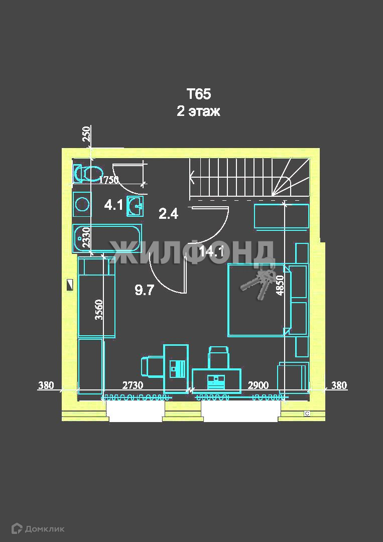 Общая площадь 60.5 м2