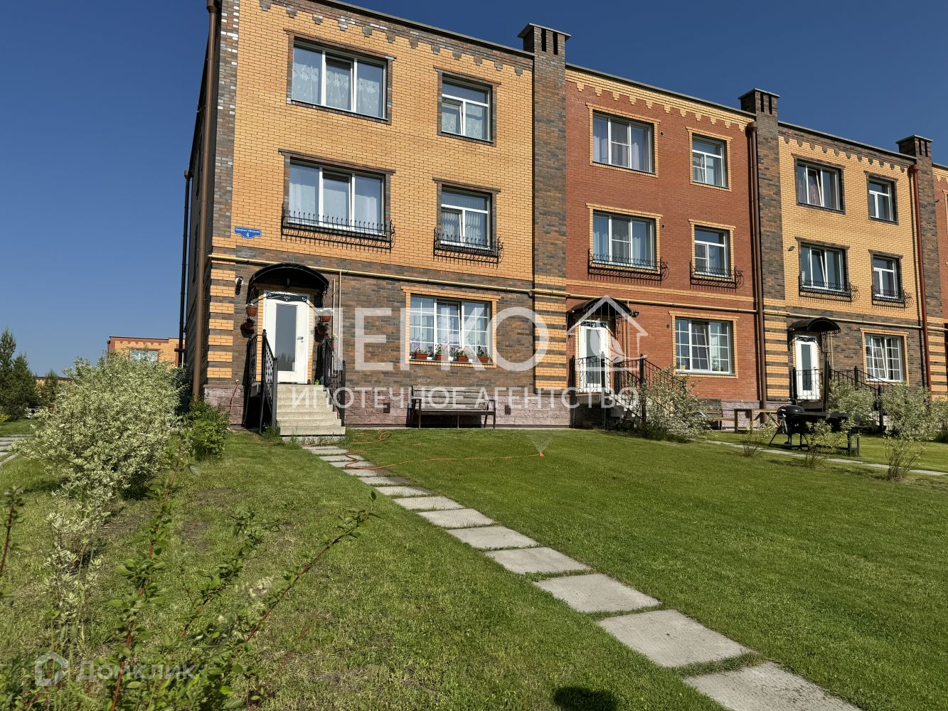 Таунхаус построен из кирпича, фасад выполнен облицовочным кирпичом двух цветов: молочный и темно-коричневый.  Квартира боковая, имеет 8 окон, что даёт больше света. Газовое отопление, на первом этаже тёплый пол. У Вас всегда будет горячая вода.