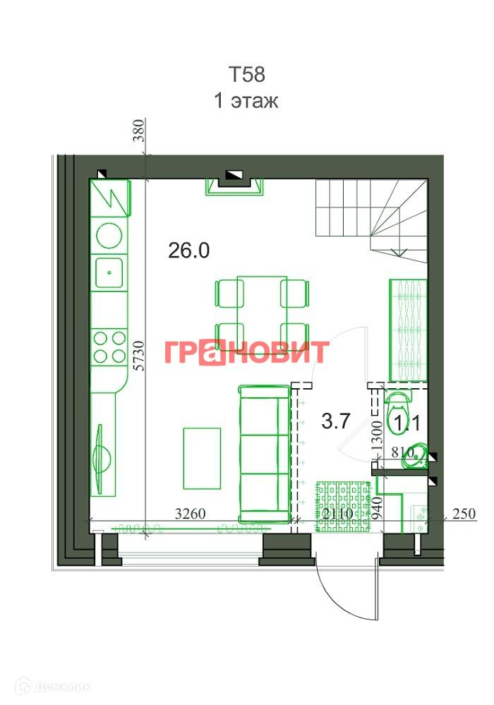 Общая площадь 58 м2