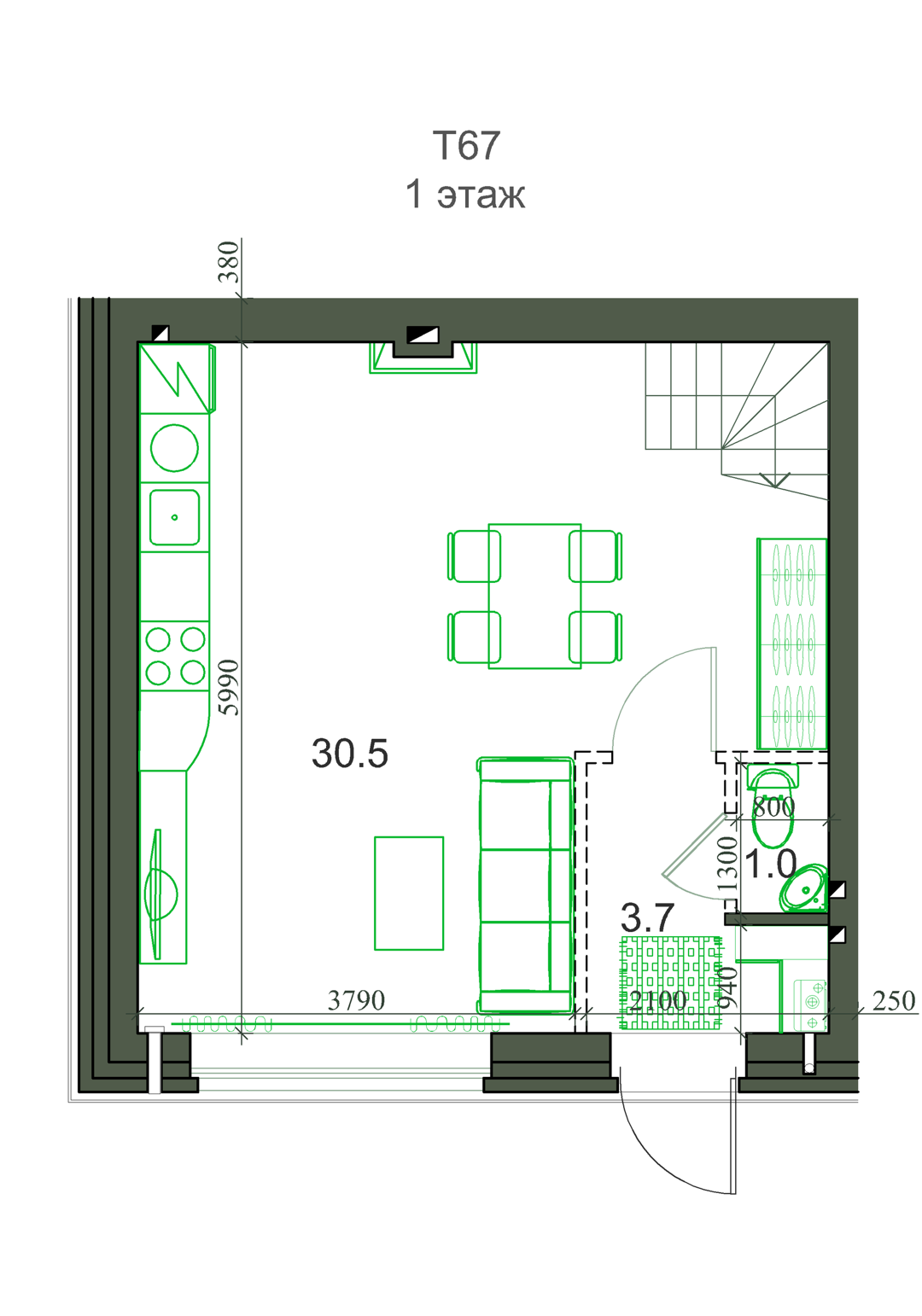 Общая площадь 67 м2