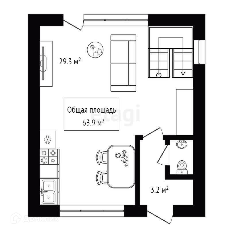 Общая площадь 63.9 м2