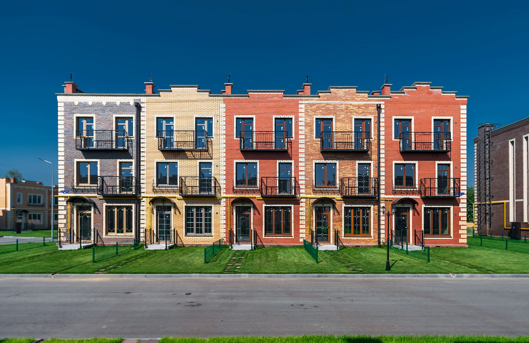 Весь посёлок построен в едином стиле, все дома из кирпича. Толщина стен 380мм.