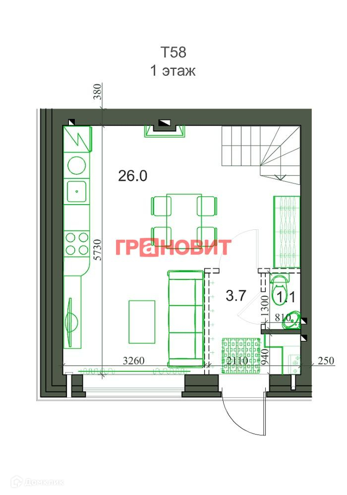 Общая площадь 60 м2