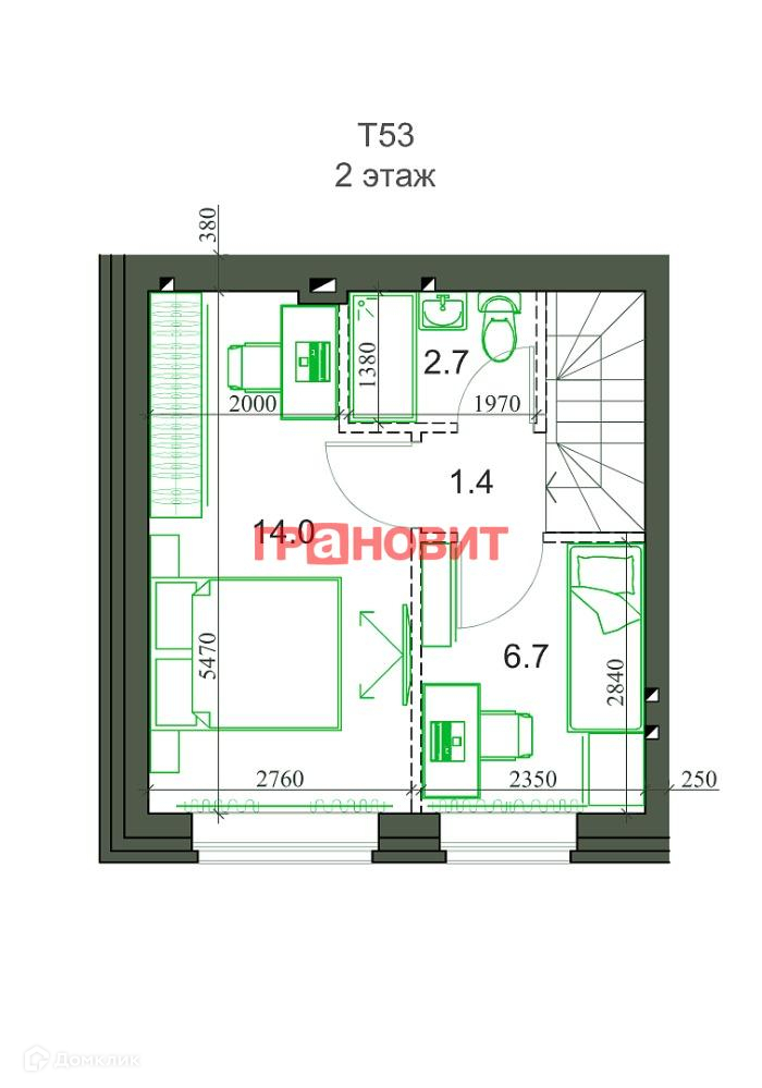 Общая площадь 52 м2