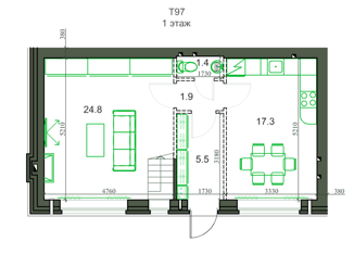 Общая площадь: 97 м2