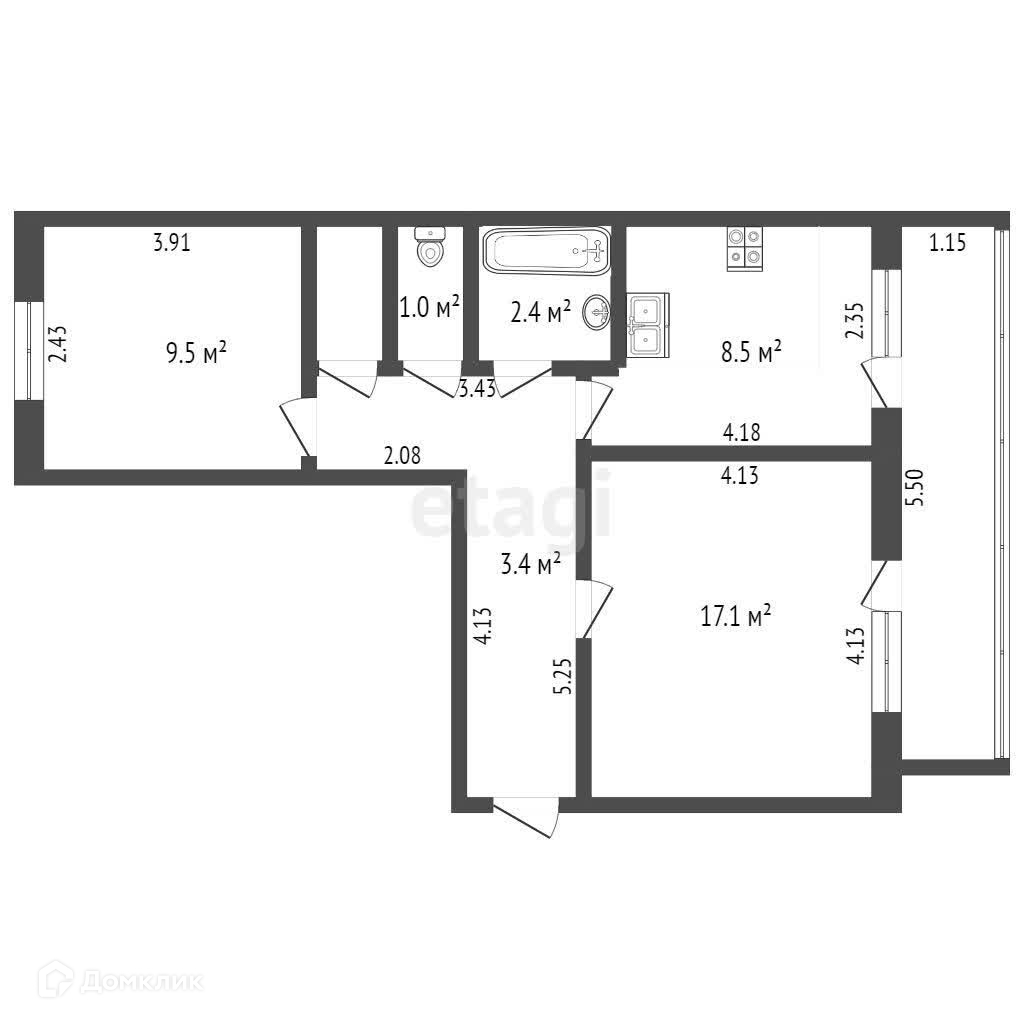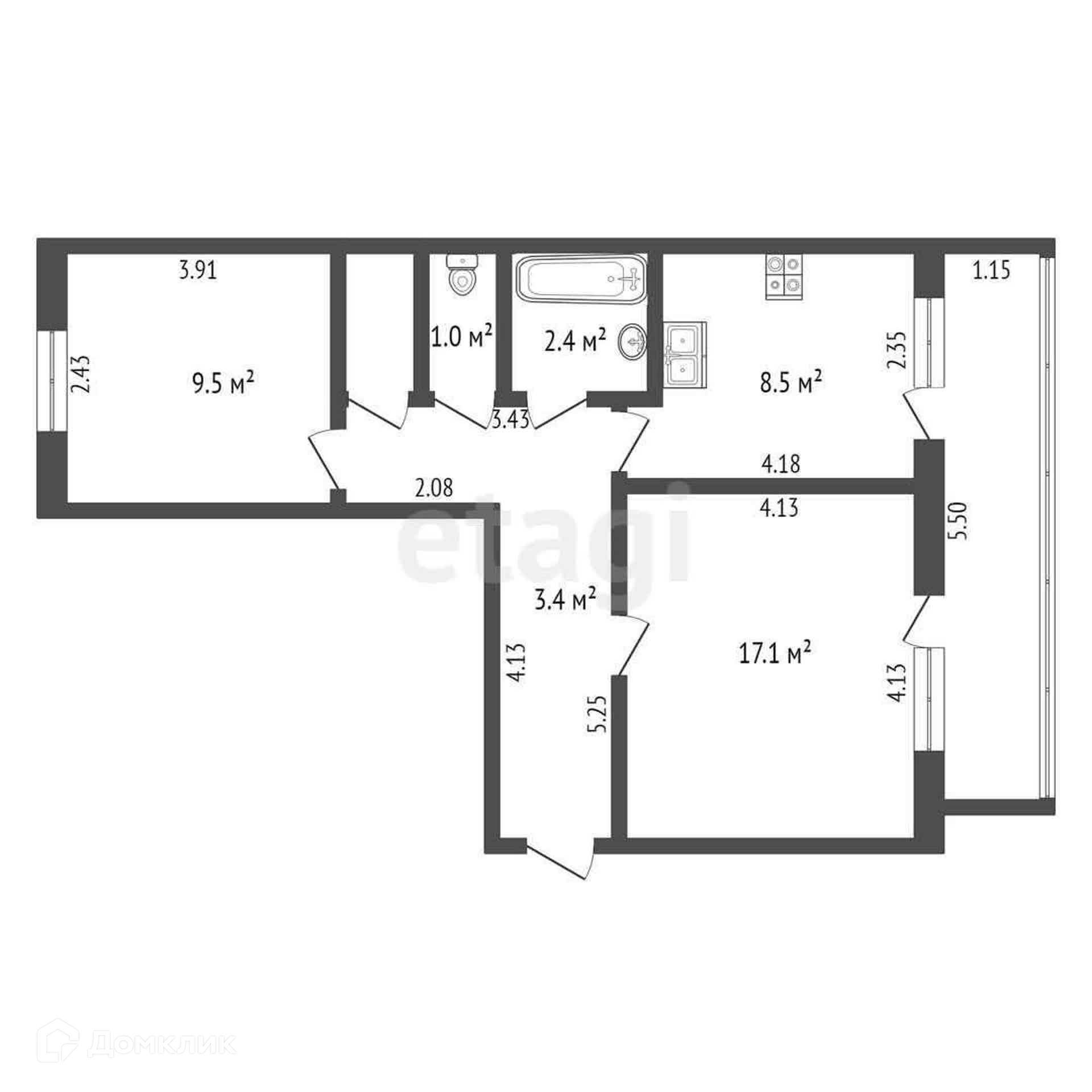 Общая площадь 48.7 м2
