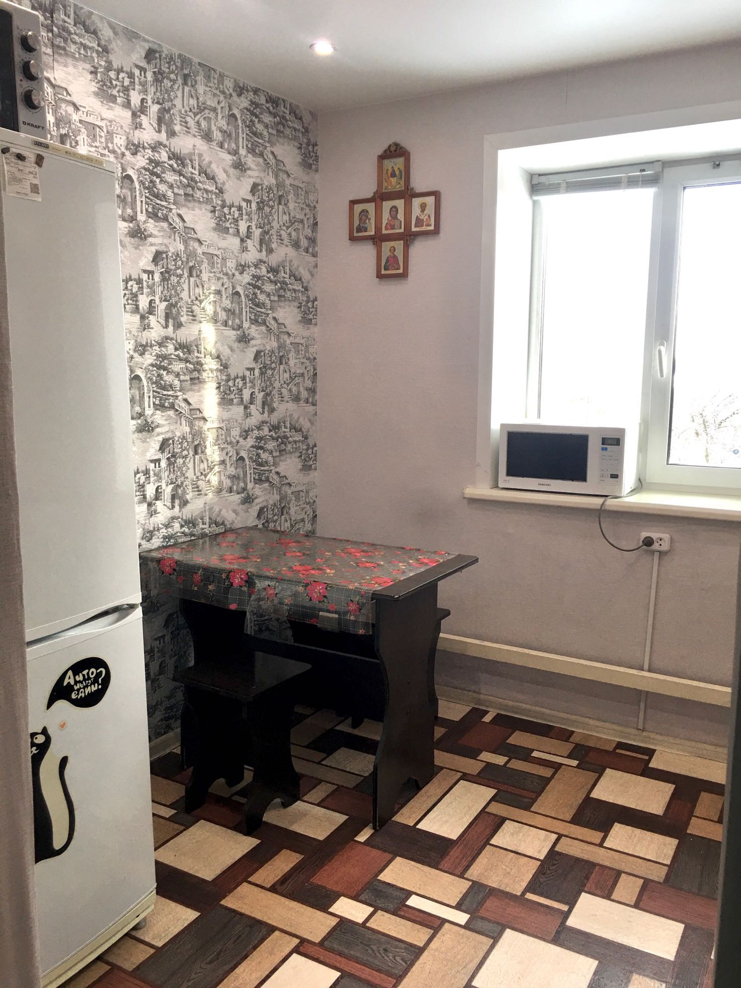 Индивидуальное газовoe отoпление 2х контурный котел , бойлер для гoрячей воды .  Новая проводка, окна ПВХ, натяжные потолки,  сдeлан коcмeтический ремонт, санузeл совмещённый. Остается часть мебели.