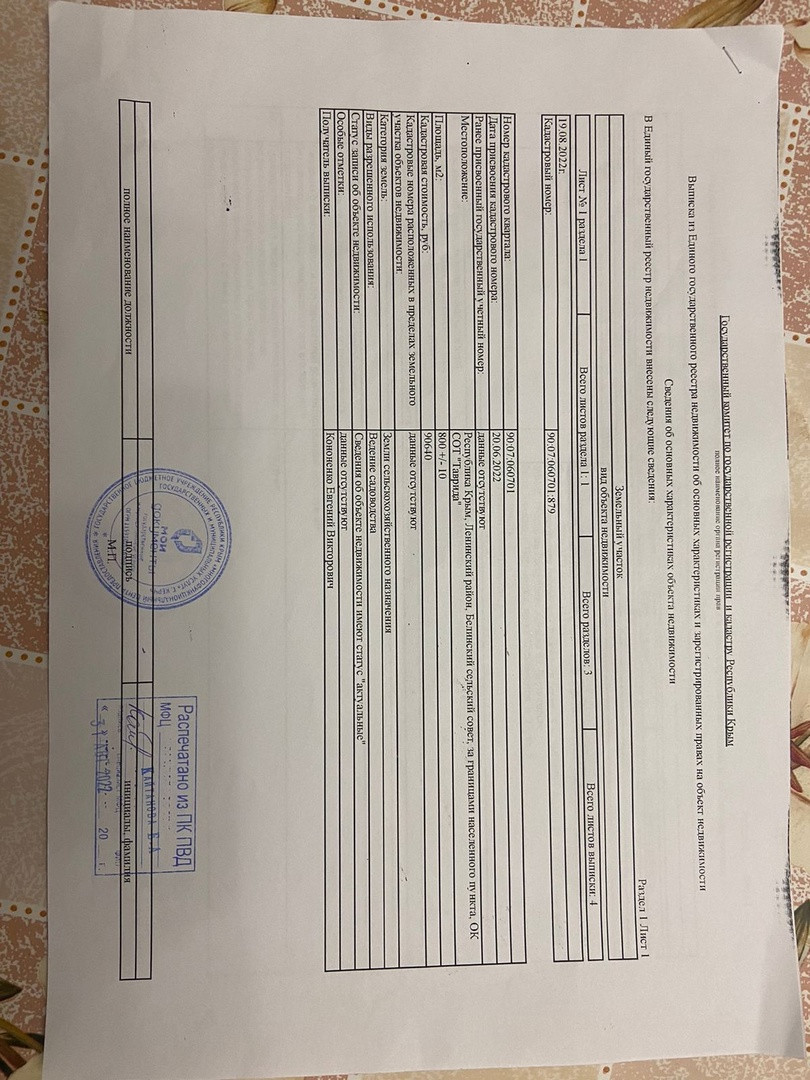 Продается видовой участок 8 сот за 2 300 000 руб Ленинский район, Таврида, в Новоотрадном, в собственности документы РФ.