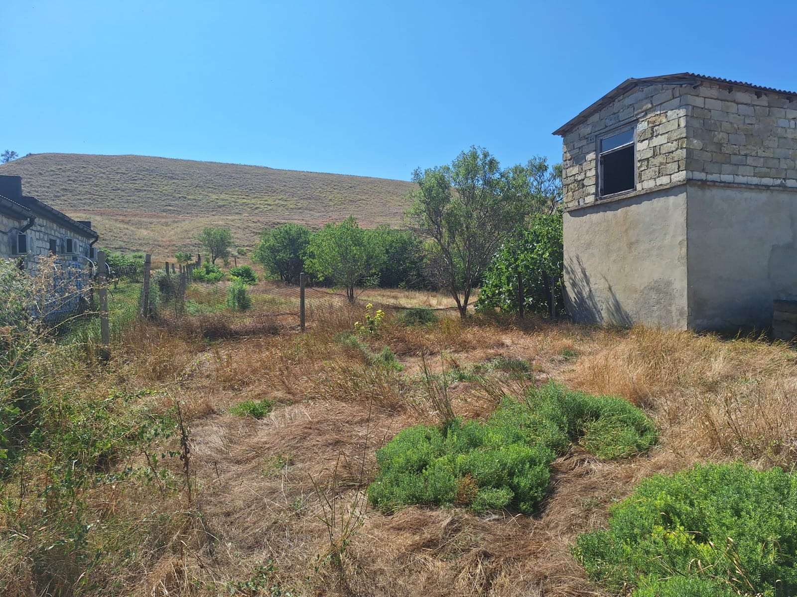 Дальняя граница участка не имеет соседей-гора защищает от ветра .