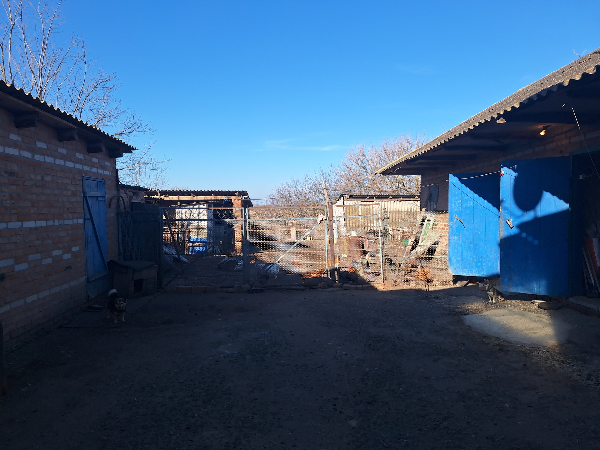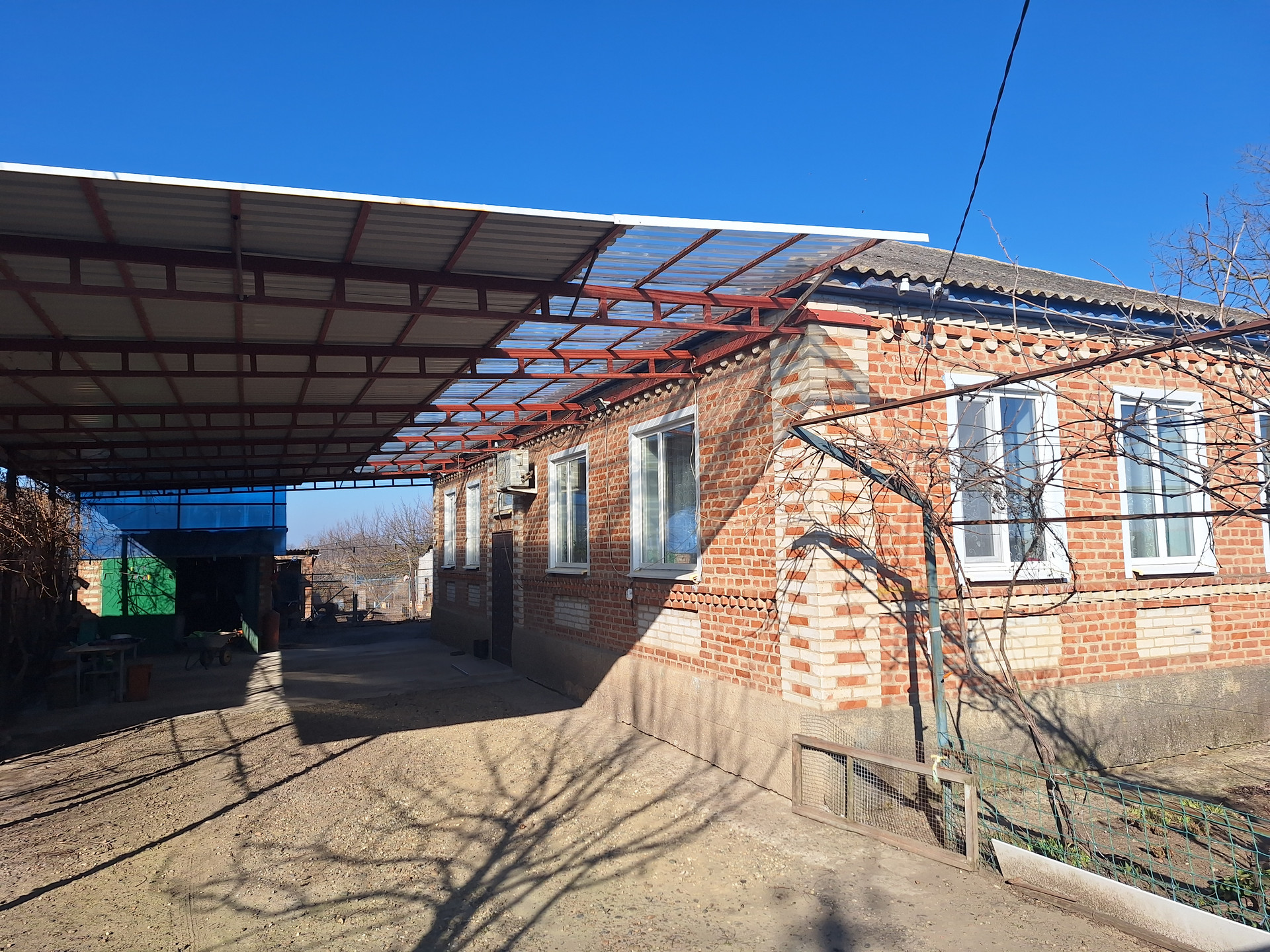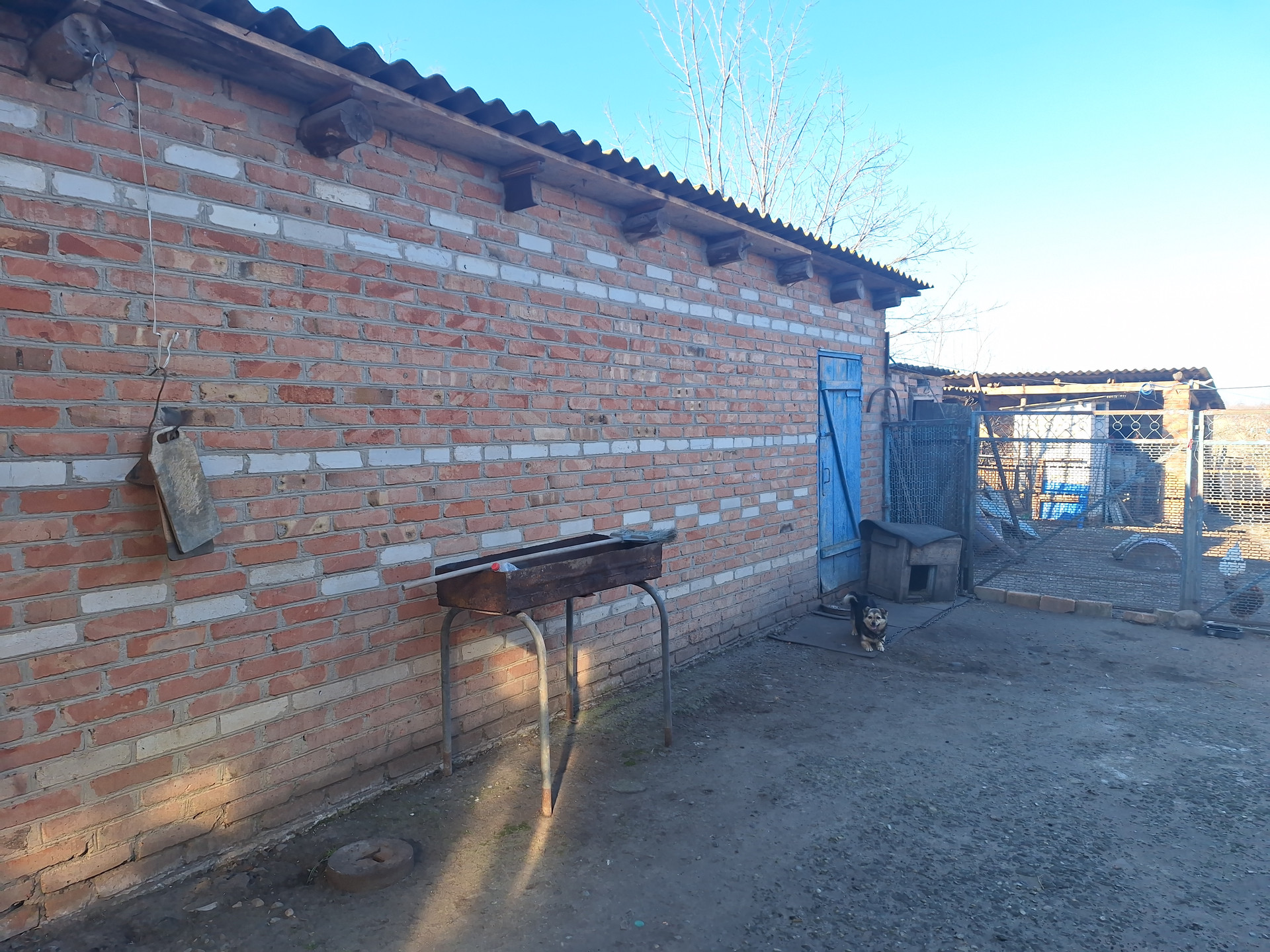 Двор забетонирован, установлен капитальный навес. Есть кирпичный гараж, с ямой, предназначенной для ремонта машин. Проведено электричество. Имеются кирпичные хоз. постройки, для хранения кормов и т.д., и для ведения личного подсобного хозяйства с погребом., для хранения домашних заготовок . Так же есть выход на чердак.
