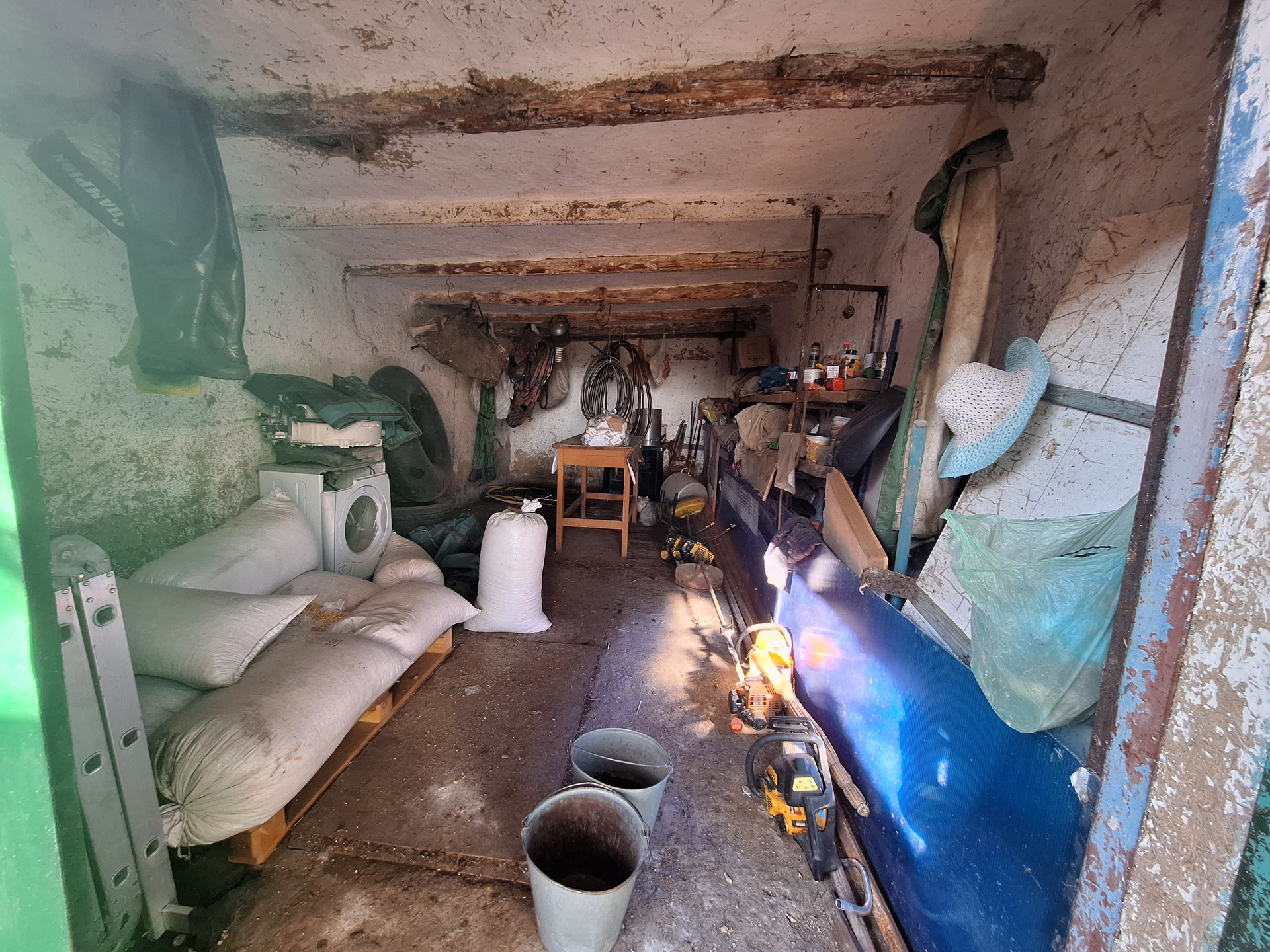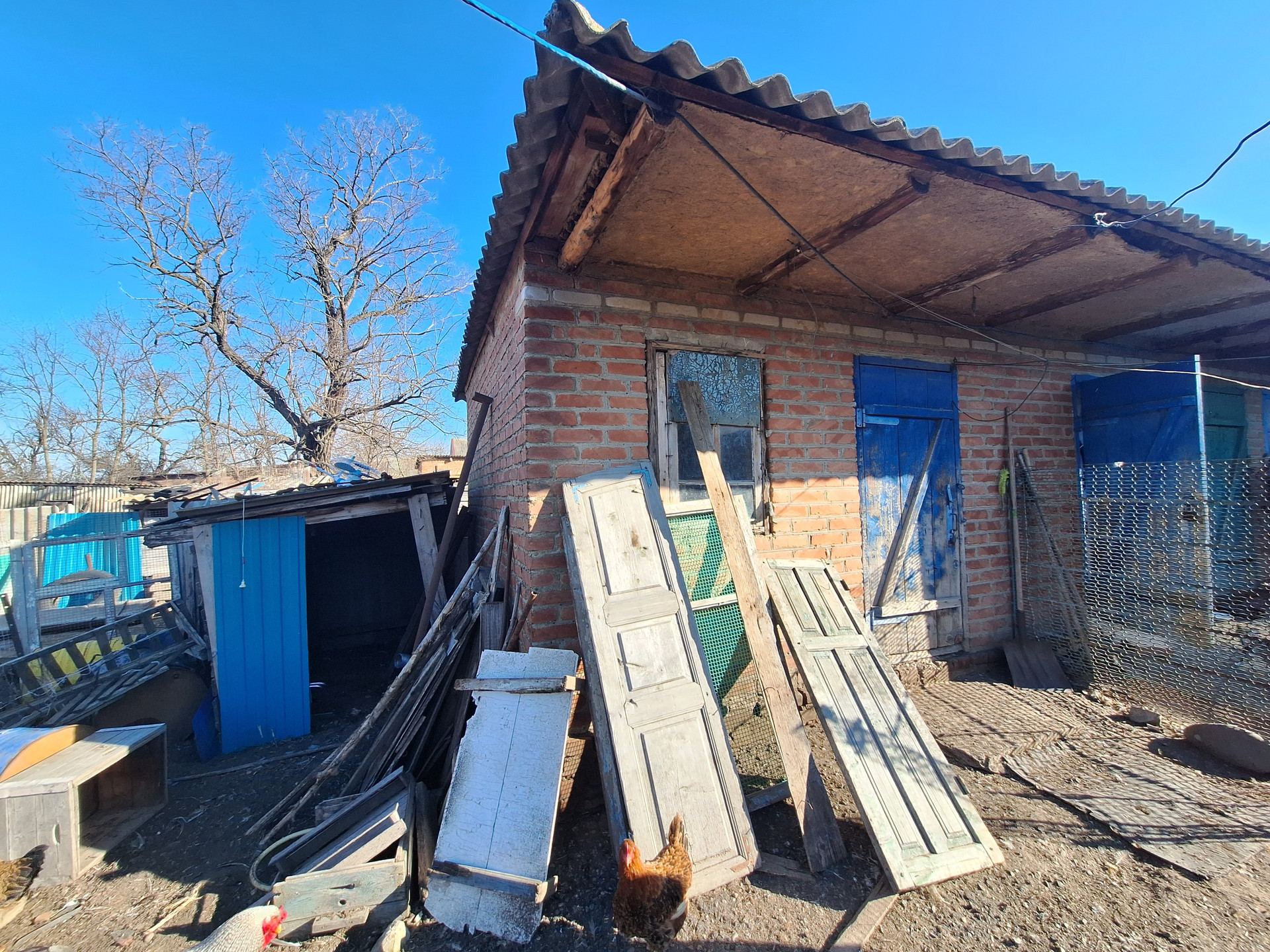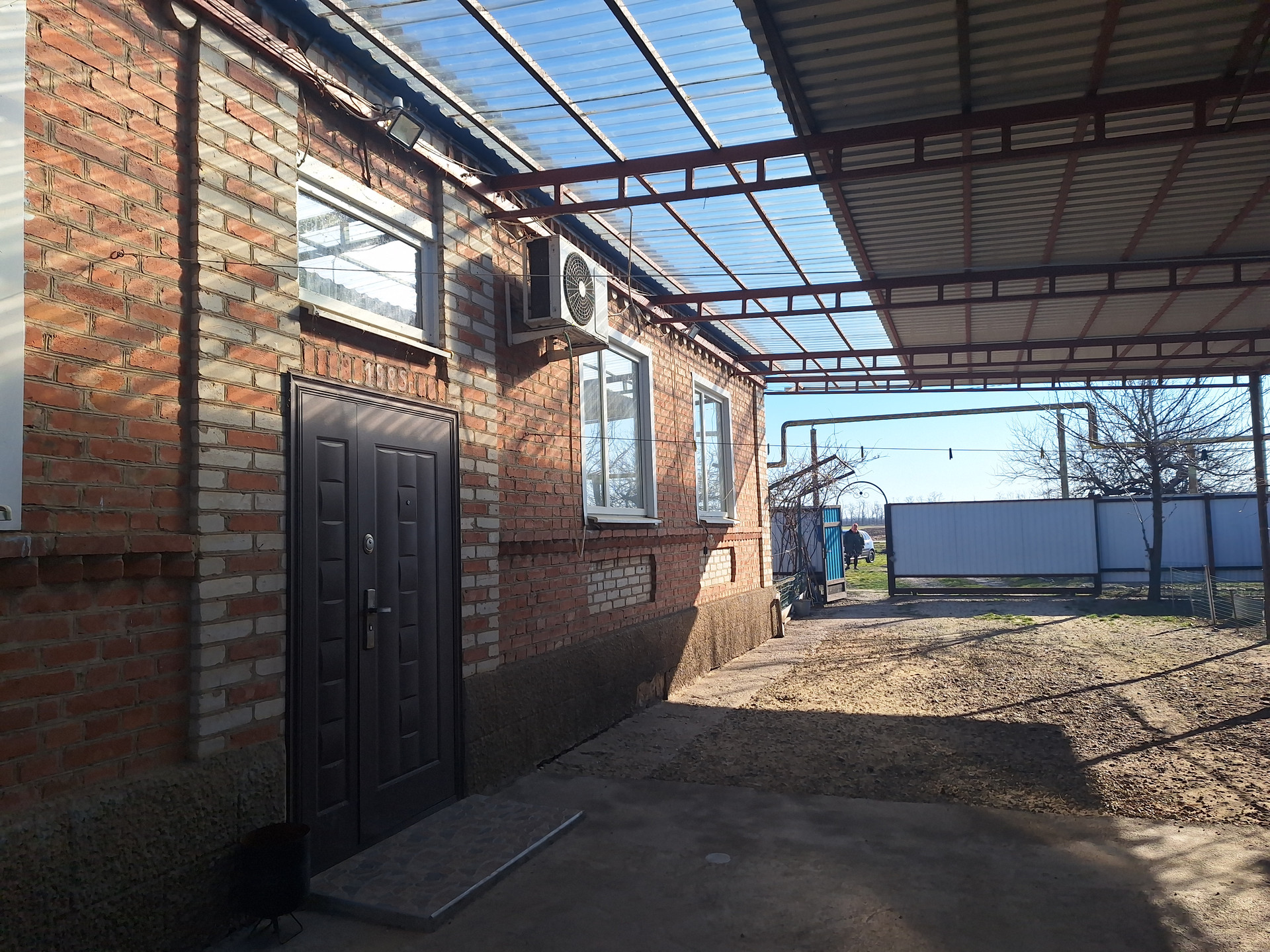 Двор забетонирован, установлен капитальный навес. Есть кирпичный гараж, с ямой, предназначенной для ремонта машин. Проведено электричество. Имеются кирпичные хоз. постройки, для хранения кормов и т.д., и для ведения личного подсобного хозяйства с погребом., для хранения домашних заготовок . Так же есть выход на чердак.