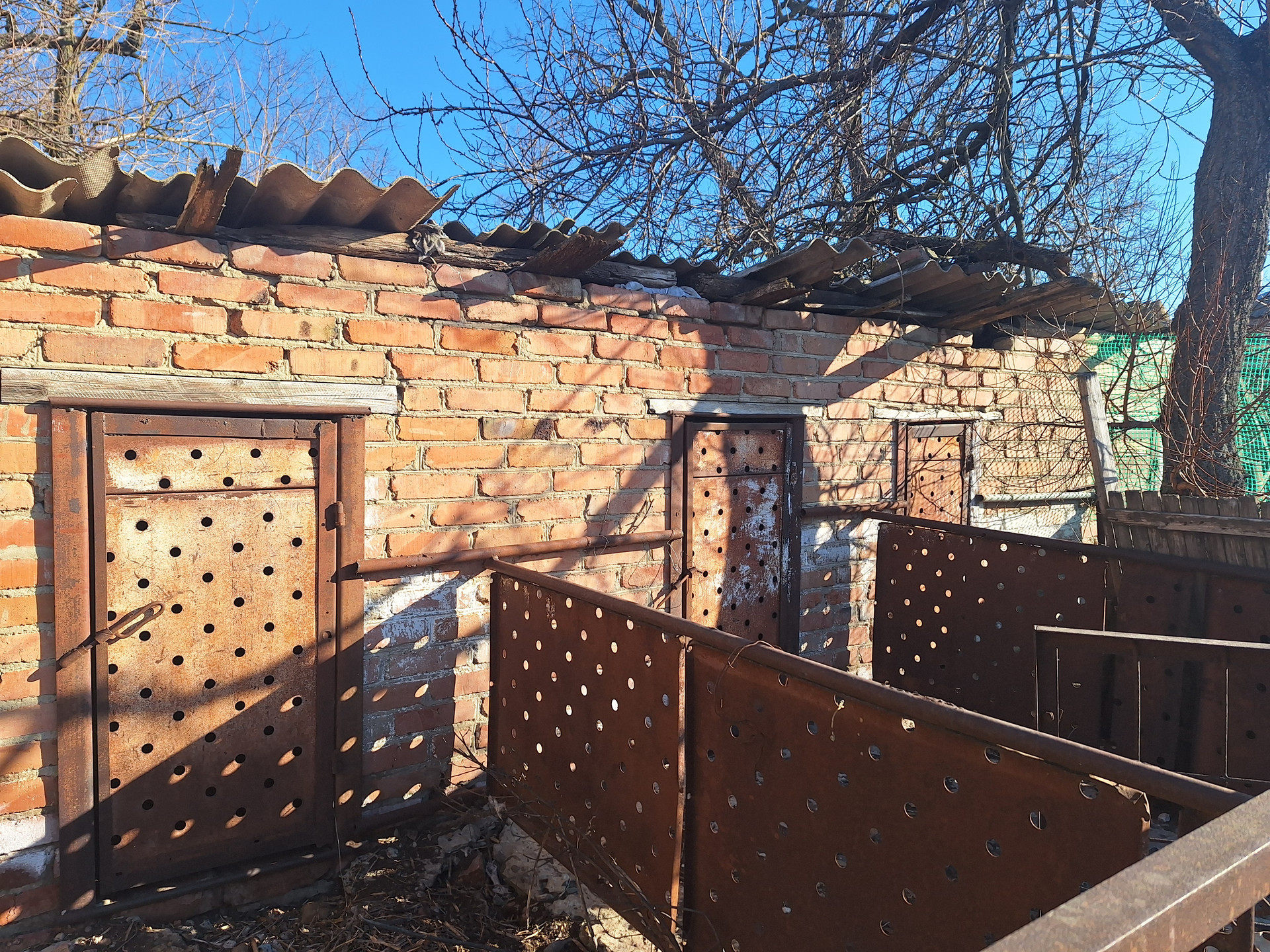 Кирпичный уличный туалет. Сеновал. Установлены две водяные колонки . Двор благоустроен, есть клумбы и палисадник.