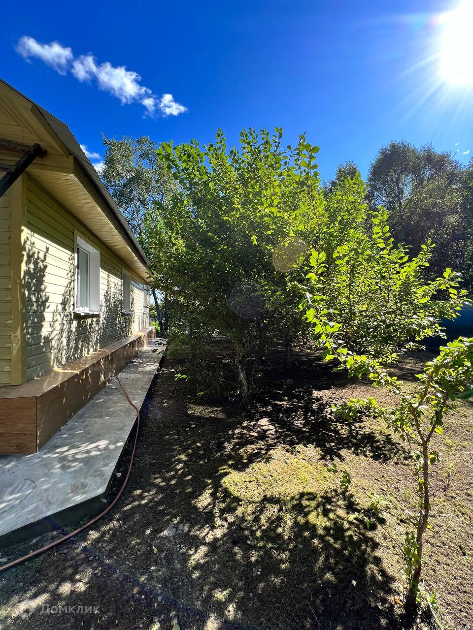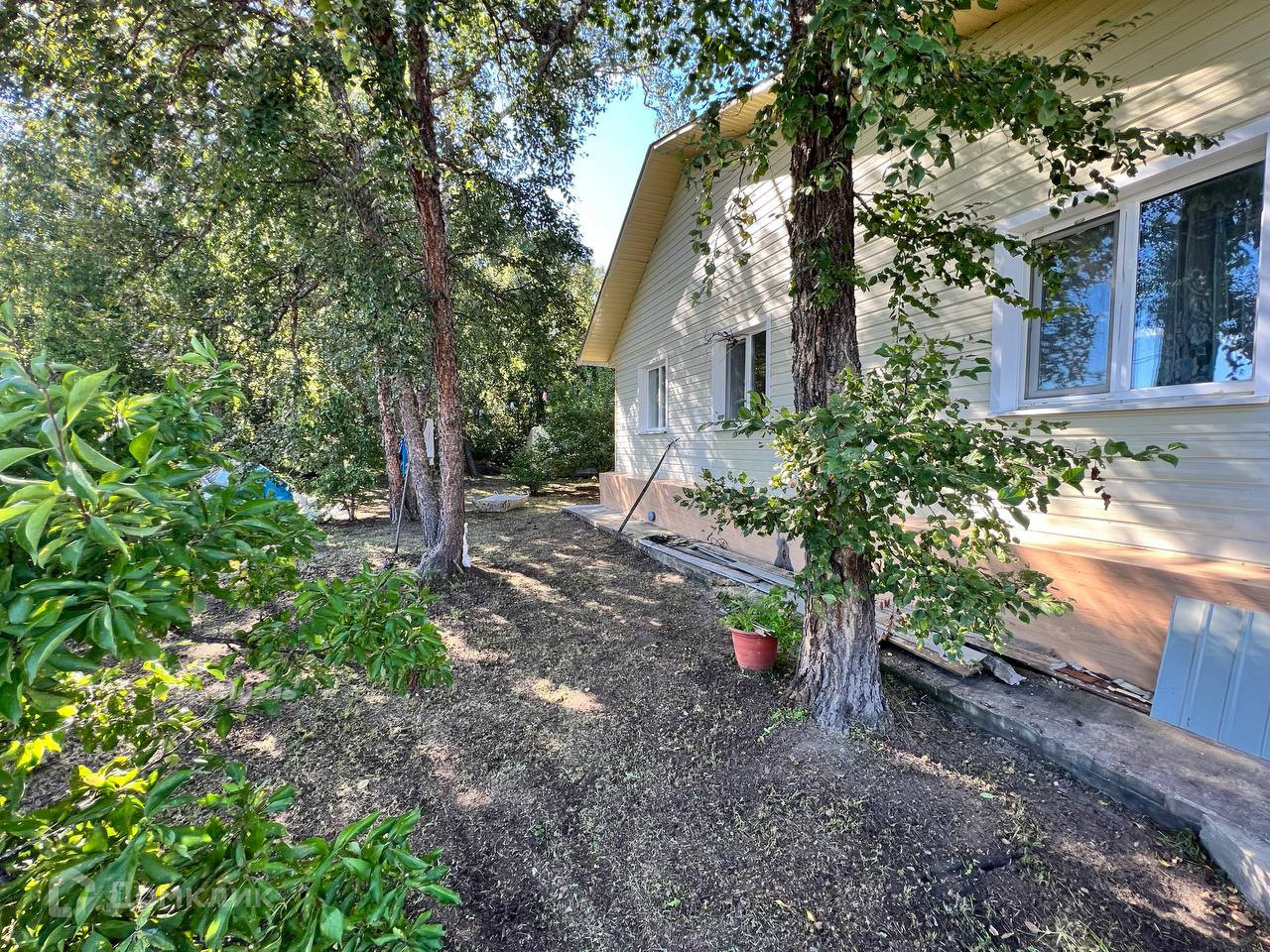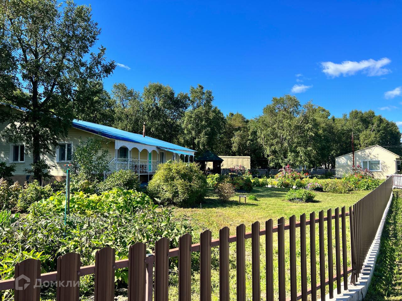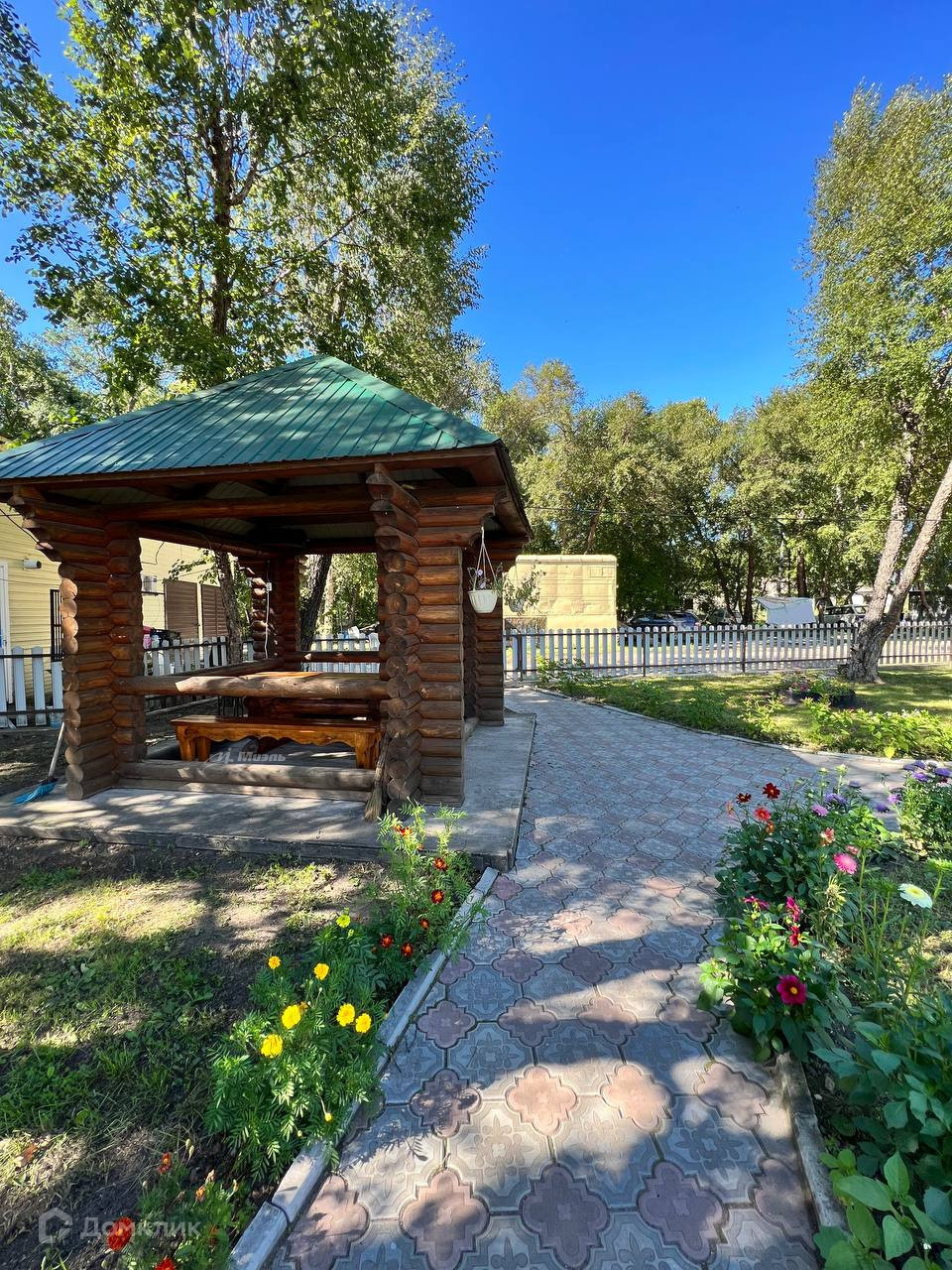 -Двор ухожен, клумбы с цветами, черные березы, плодово-ягодные насаждения, Слива, Малина, Жимолость, Вишня, Смородина