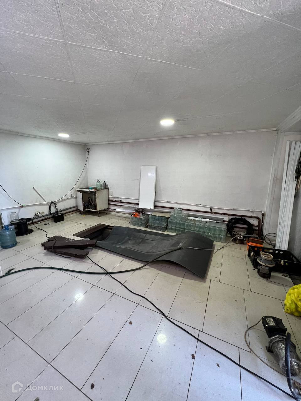 -Гараж на две машины в керамической плитки белого цвета, смотровая яма