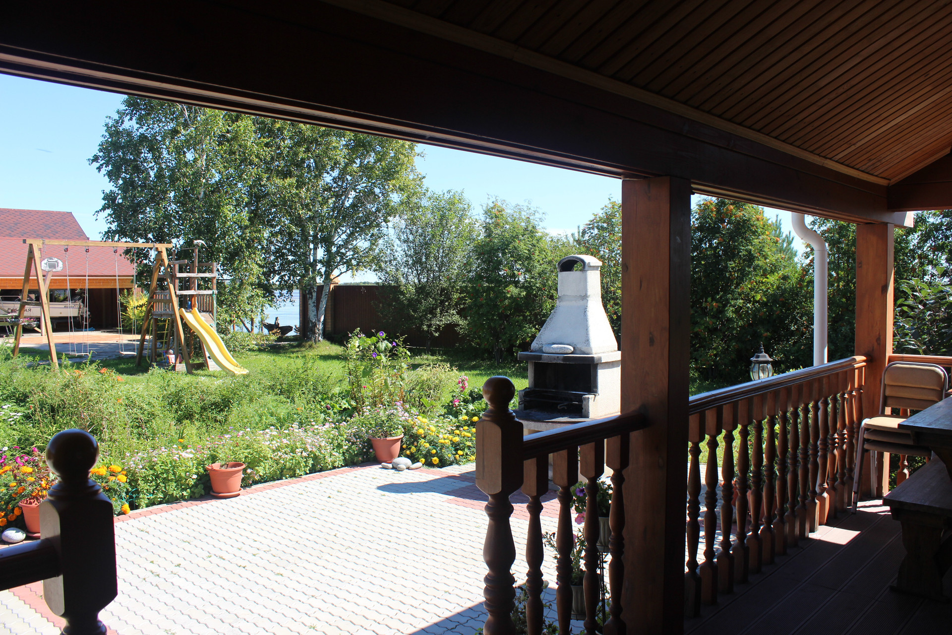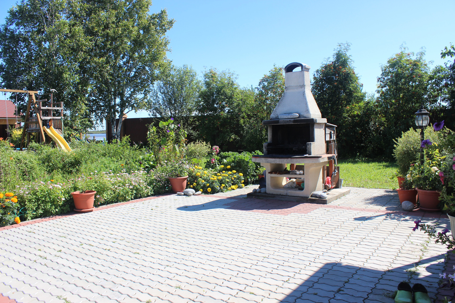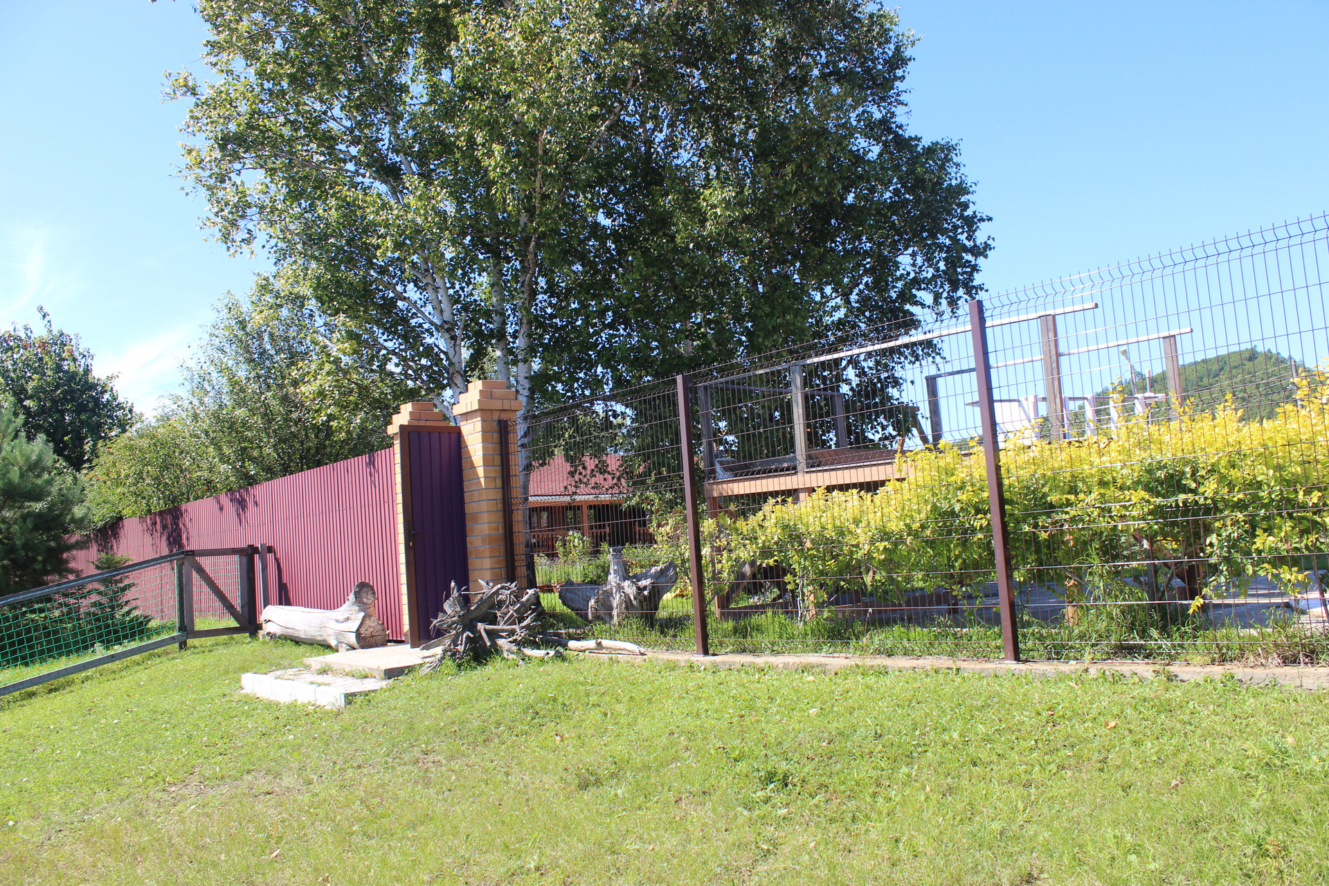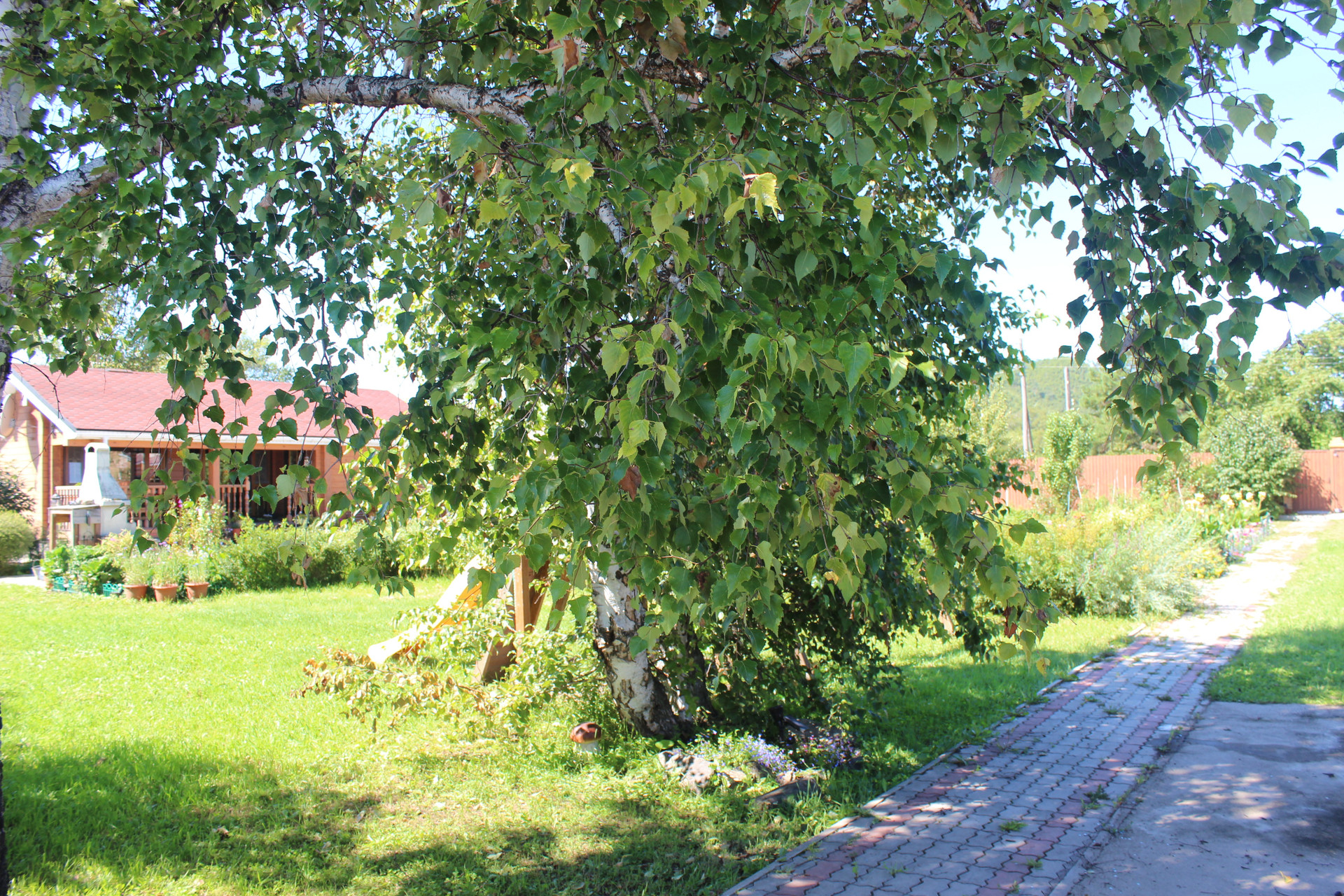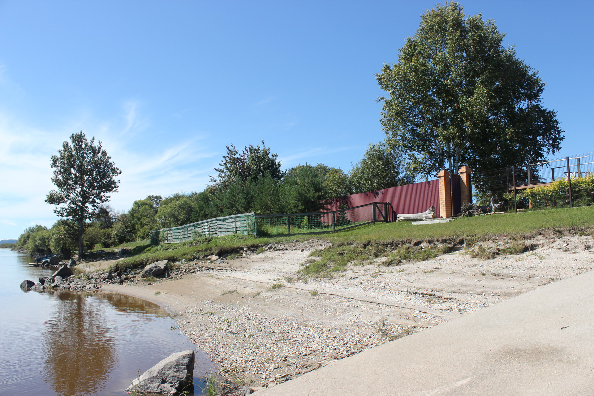 Много различных насаждений: плодово-ягодные, декоративные кустарники, хвойные разных пород, газон! Со стороны набережной, небольшой сосновый полисадник с маслятами!