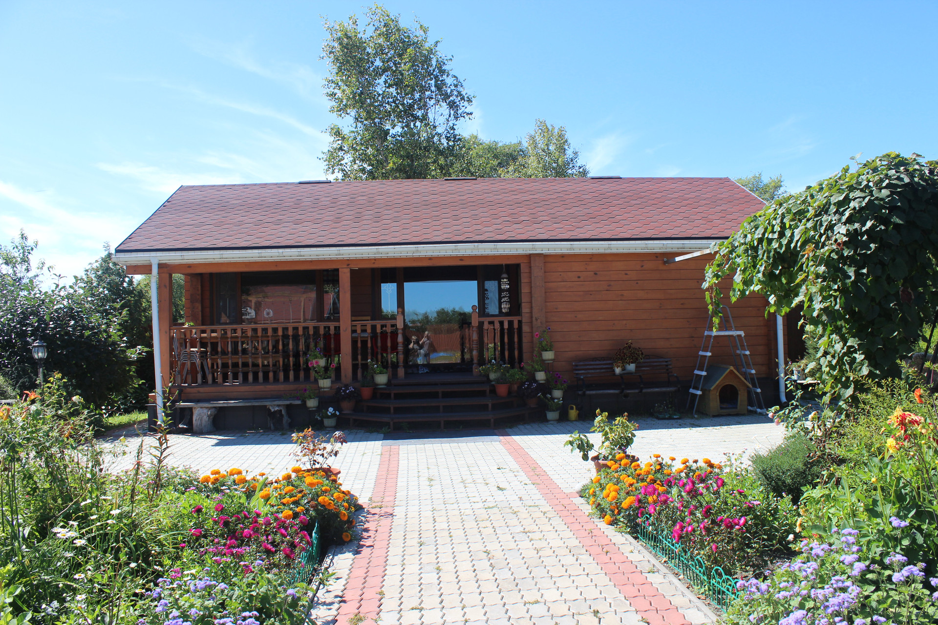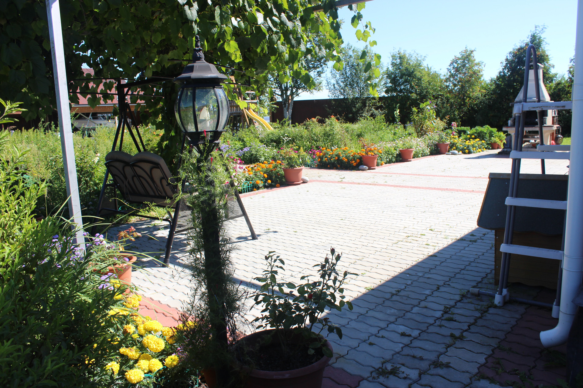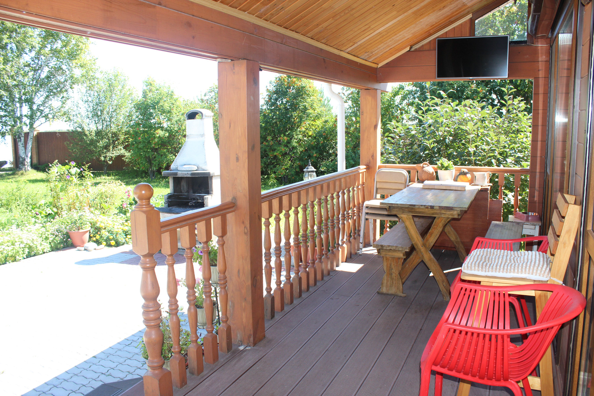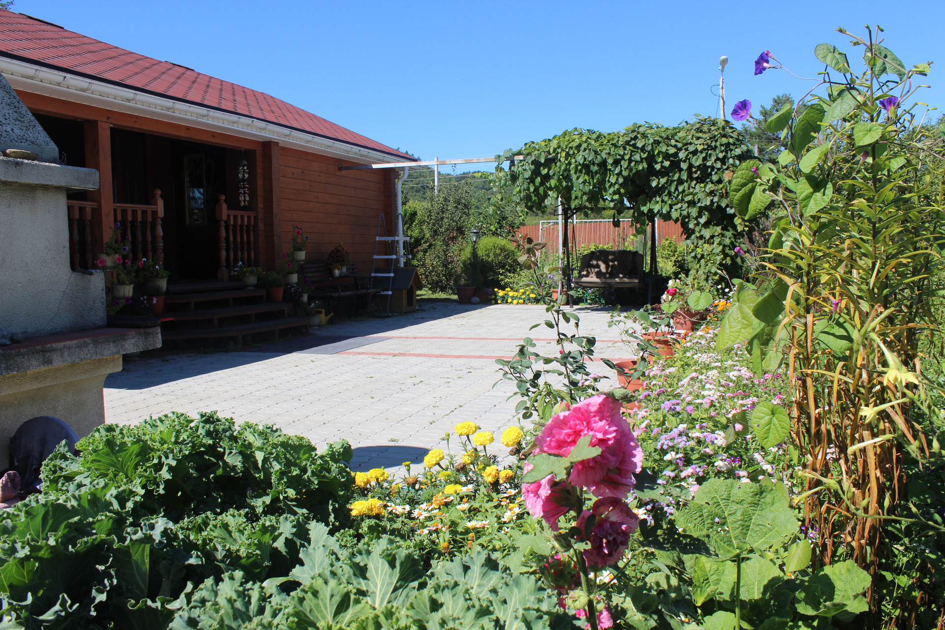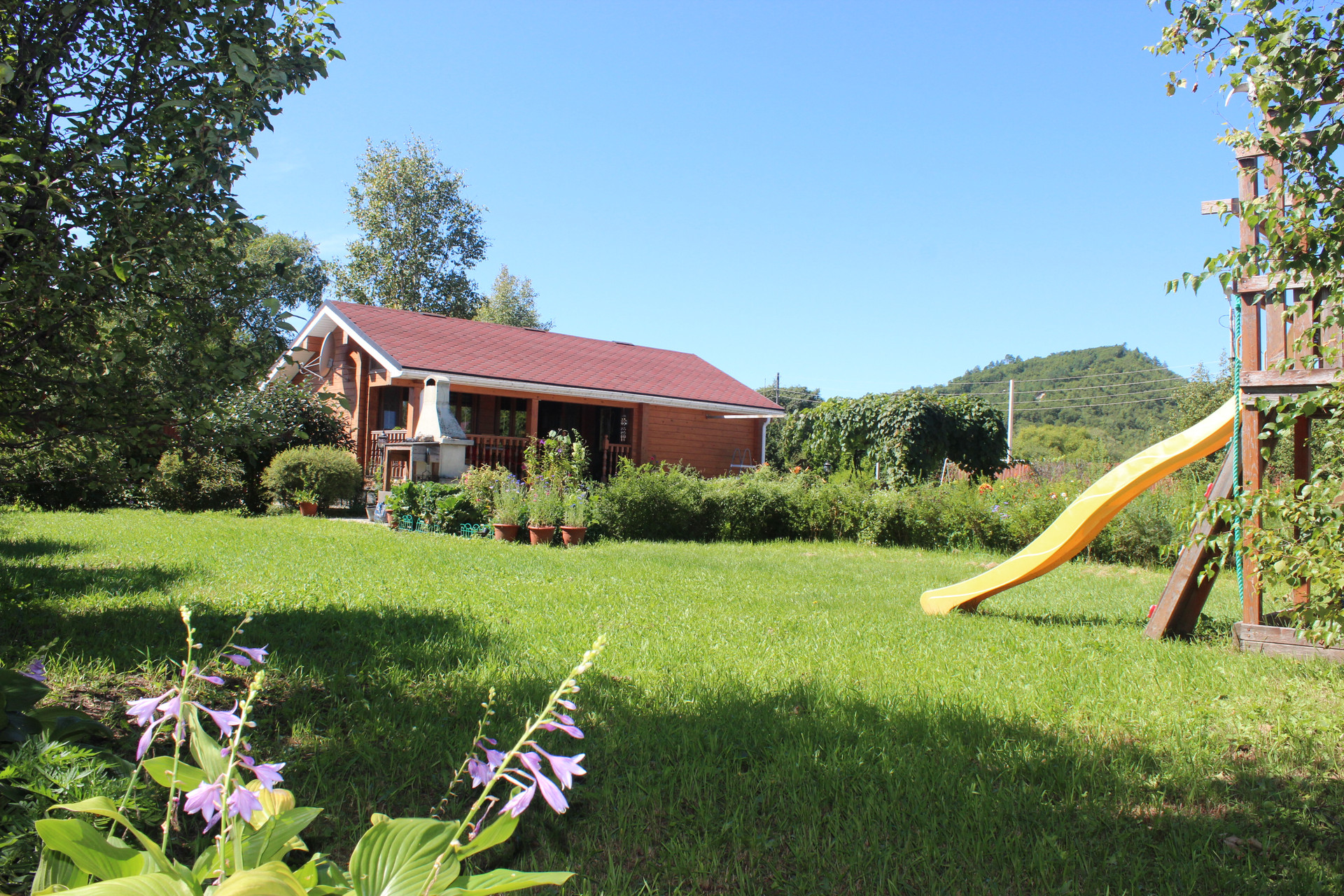 Много различных насаждений: плодово-ягодные, декоративные кустарники, хвойные разных пород, газон! Со стороны набережной, небольшой сосновый полисадник с маслятами!