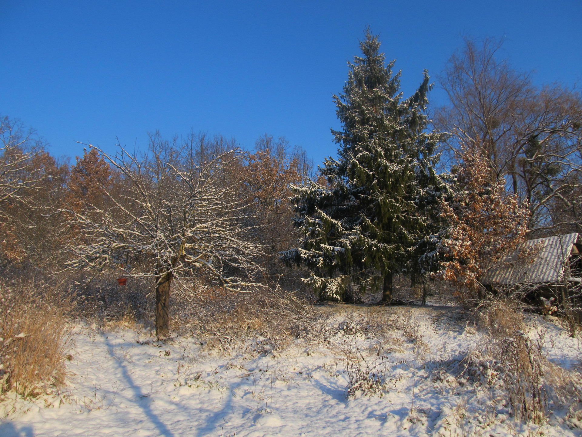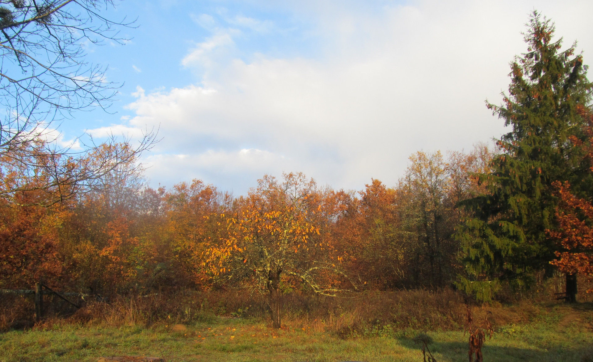 Часть участка находится в лесу, под сенью деревьев.